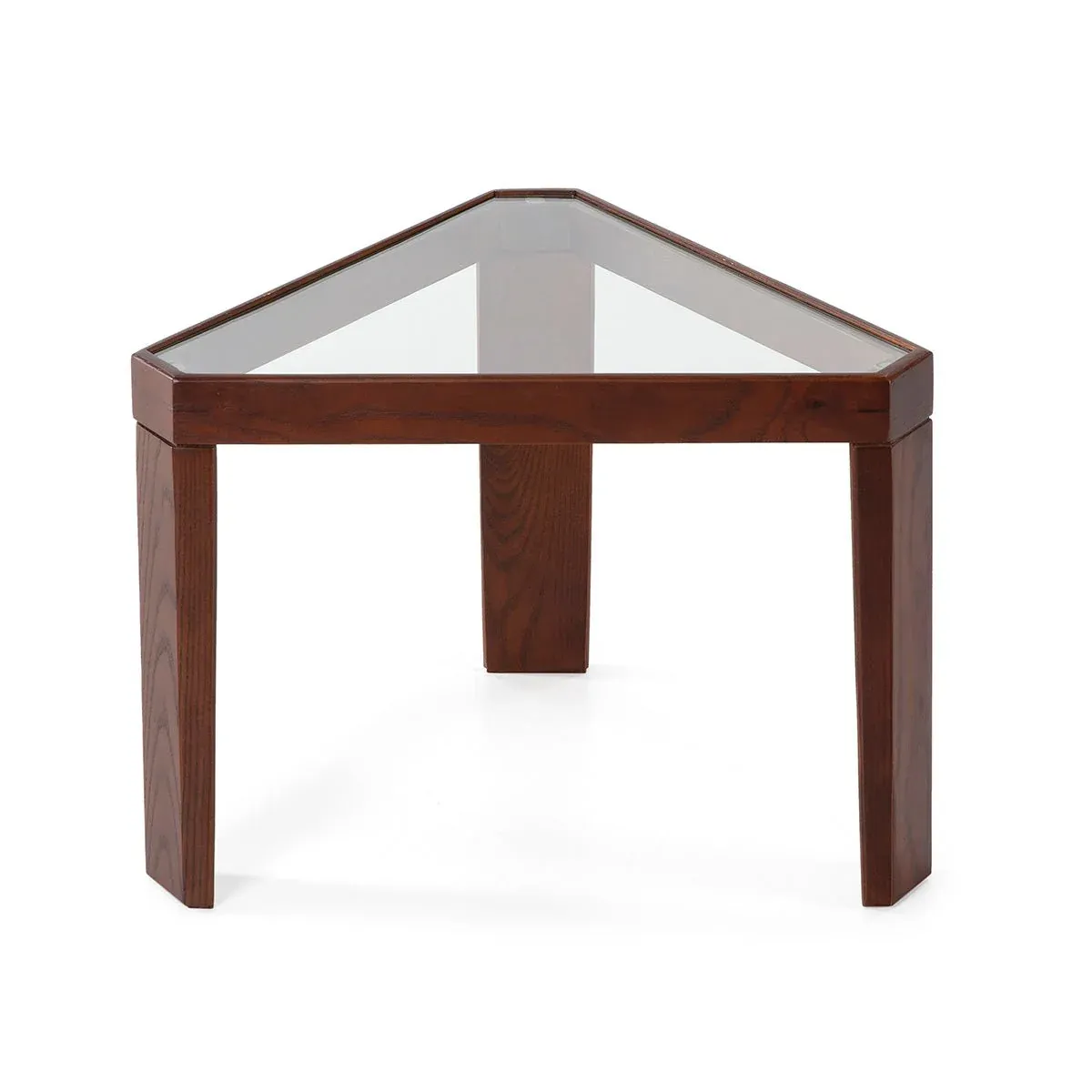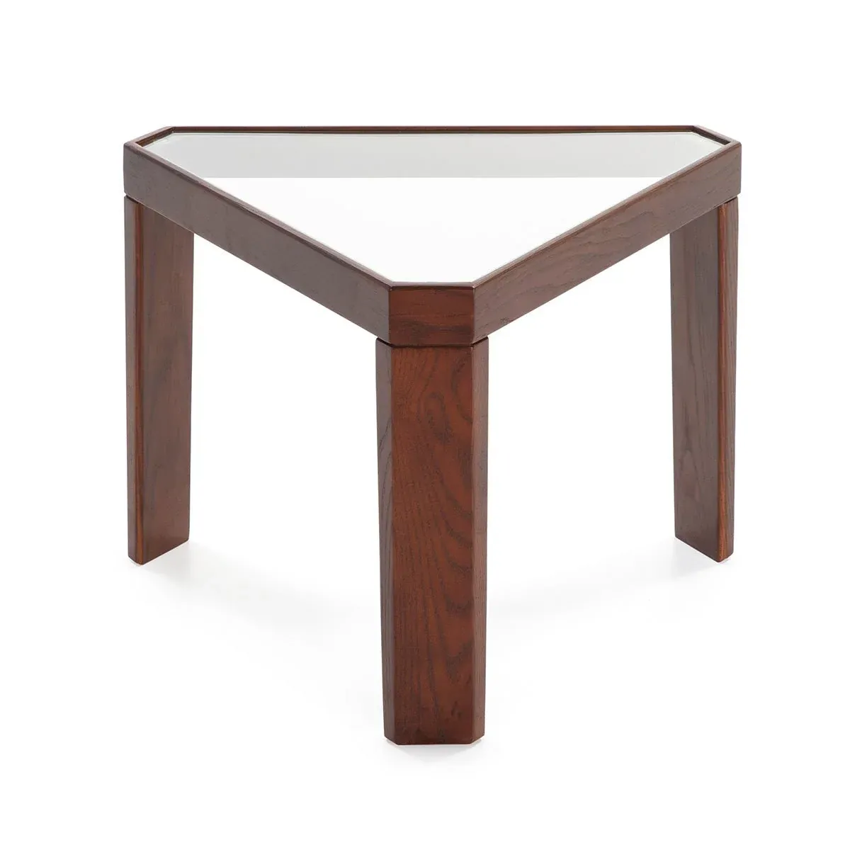 Preciosa mesa auxiliar con estructura fabricada en madera color marrón oscuro y tapa de cristal.