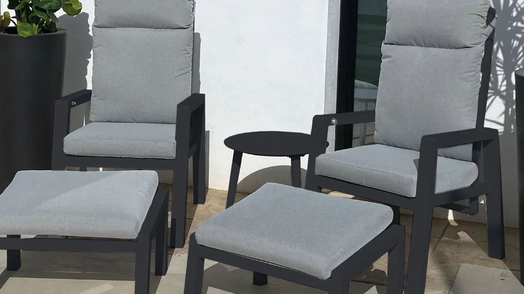 Mesa auxiliar de exterior fabricada en aluminio color antracita.