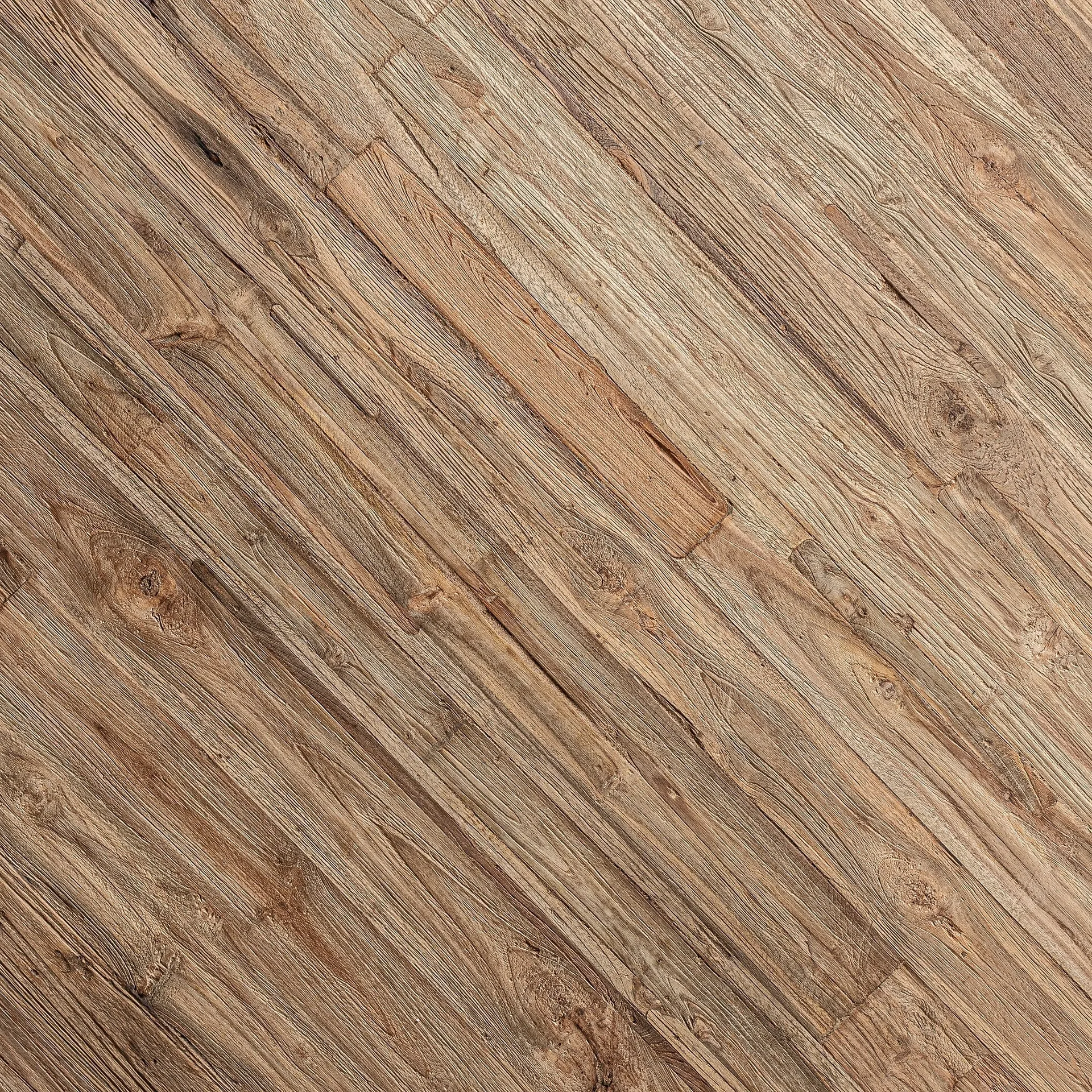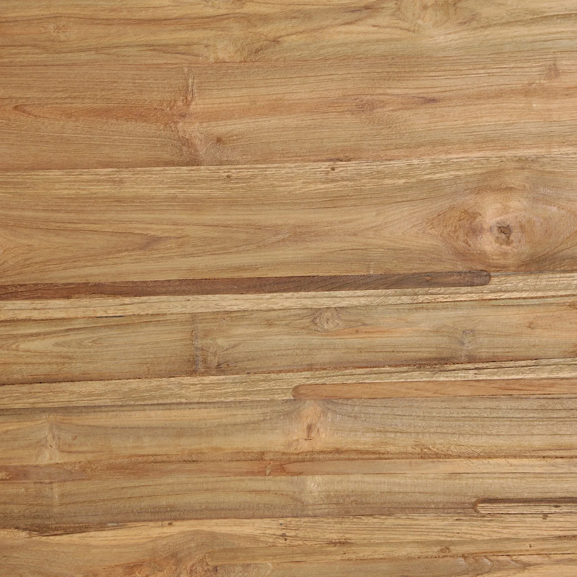 Mesa de comedor redonda fabricada en madera de teca reciclada color natural, esta robusta mesa se apoya en tres patas ofreciendo un equilibrio perfecto.