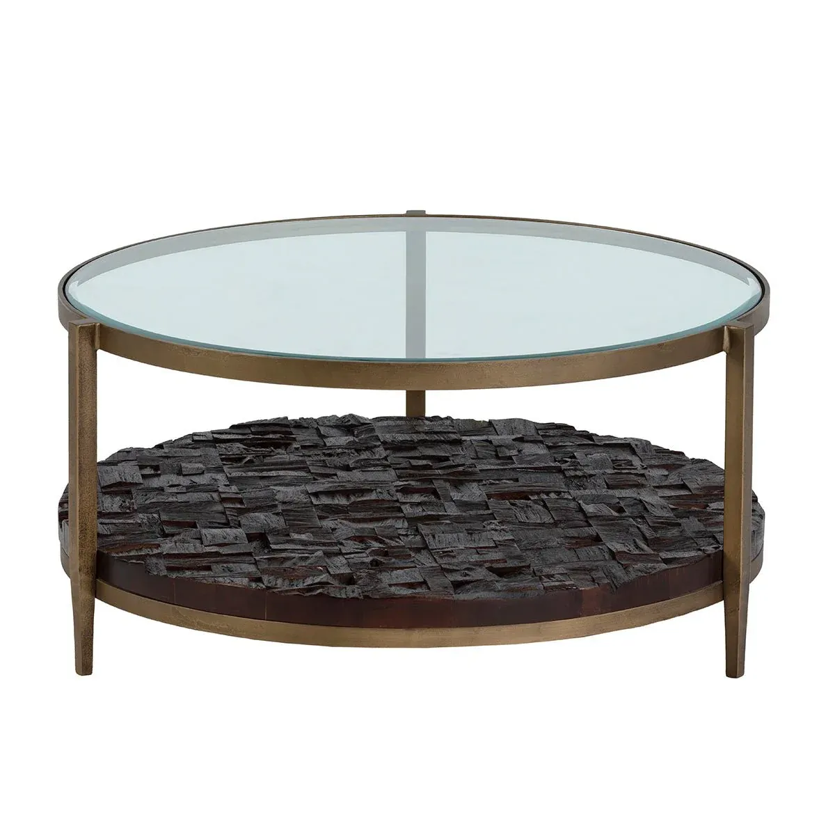 Preciosa mesa de centro fabricada en madera de roble en color negro con tapa en cristal. Disponible en 2 medidas.