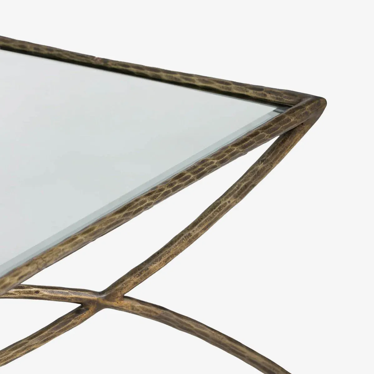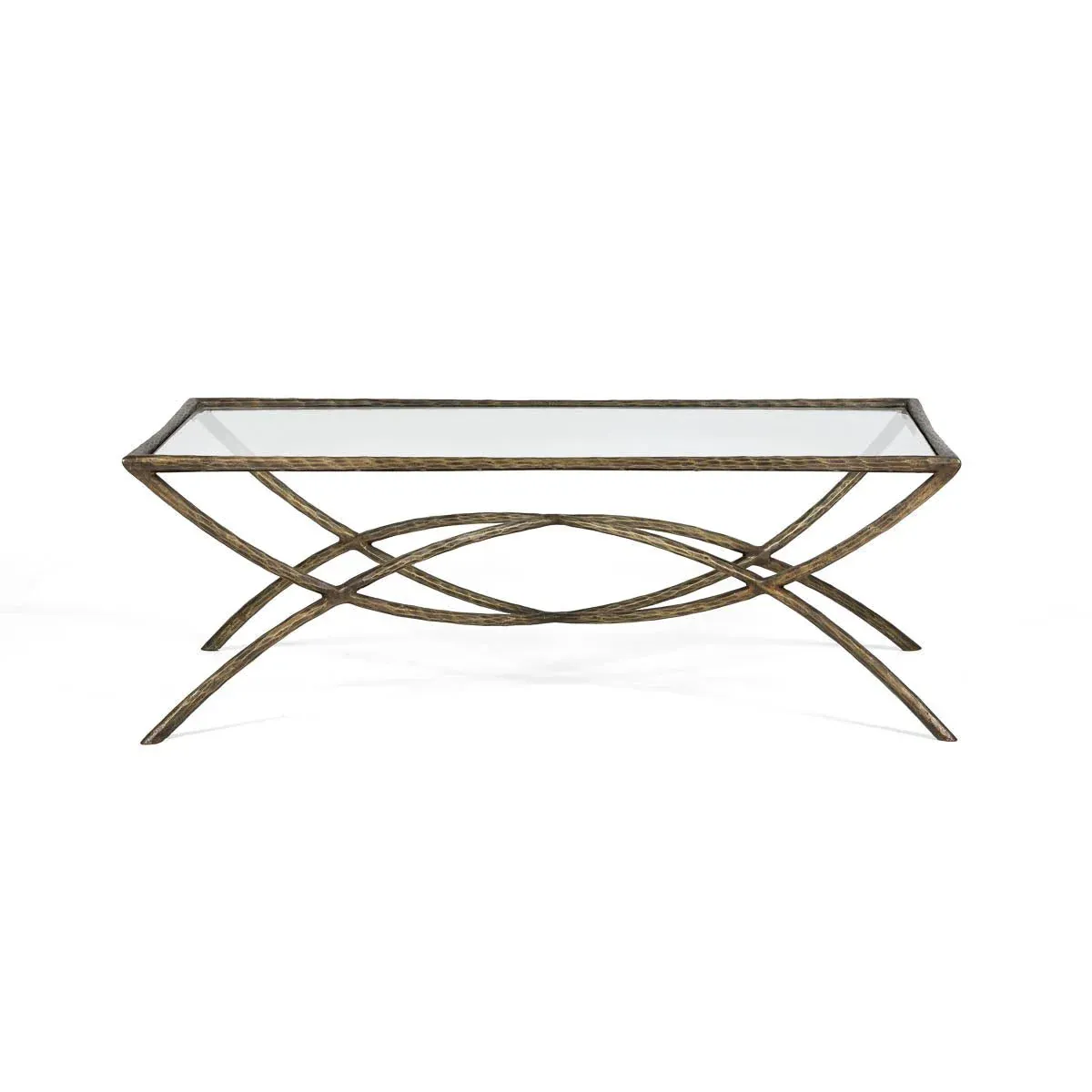 Preciosa mesa de centro fabricada en metal color dorado antique y tapa en cristal.