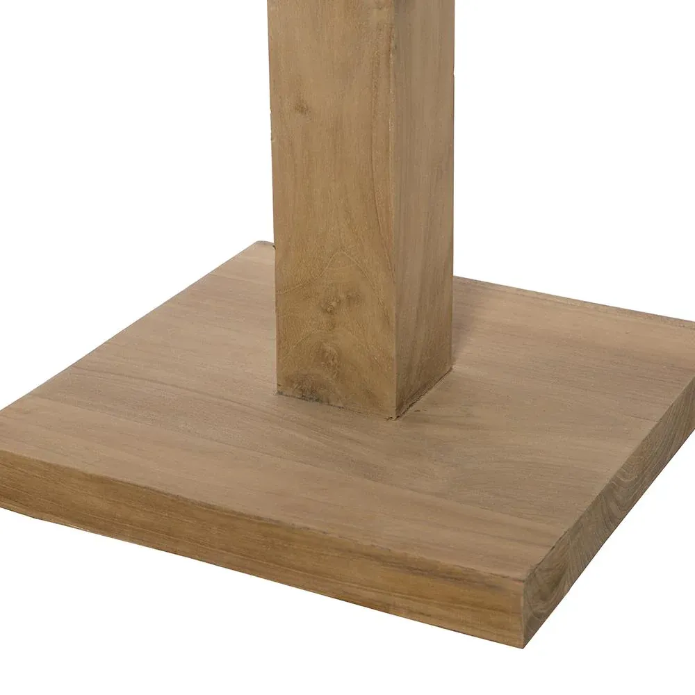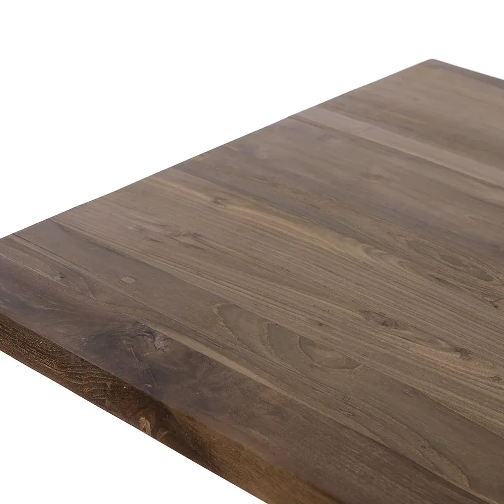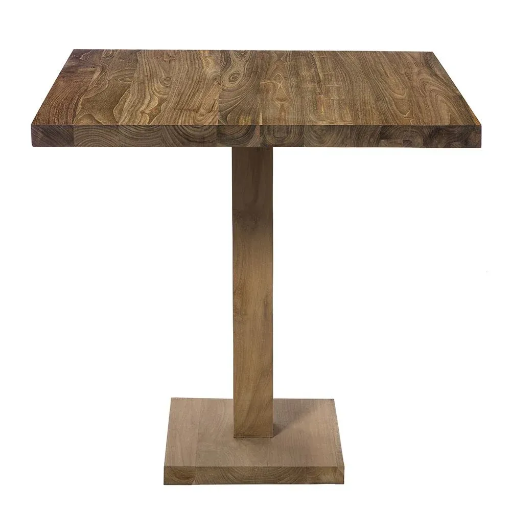 Mesa de comedor cuadrada de madera de teca en color natural. Requiere montaje sencillo. Perfecta para bares y restaurantes.