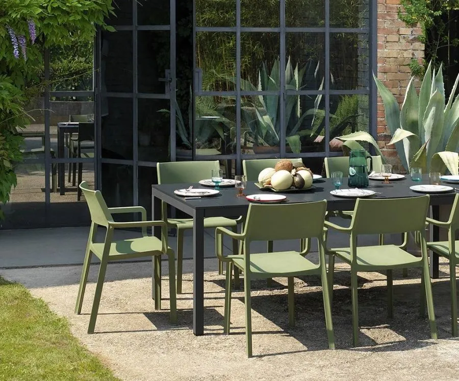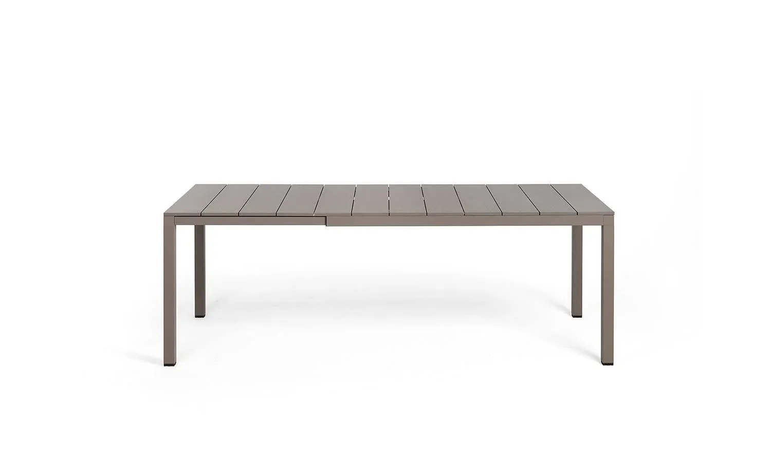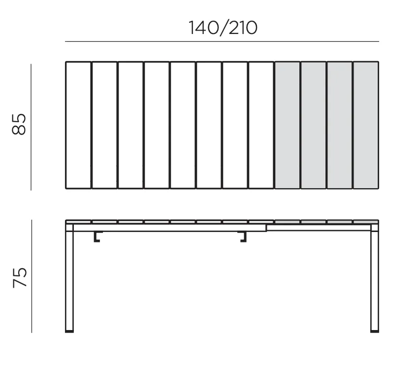 La mesa de comedor Rio Alu 140 extensible es perfecta para exteriores o interiores y llama la atención con sus detalles arquitecturales y destacada personalidad. Superficie con duelas de aluminio barnizado ligeramente rayado y estructura también de aluminio barnizado. Propuesta en dos medidas para satisfacer las diferentes necesidades de espacio.