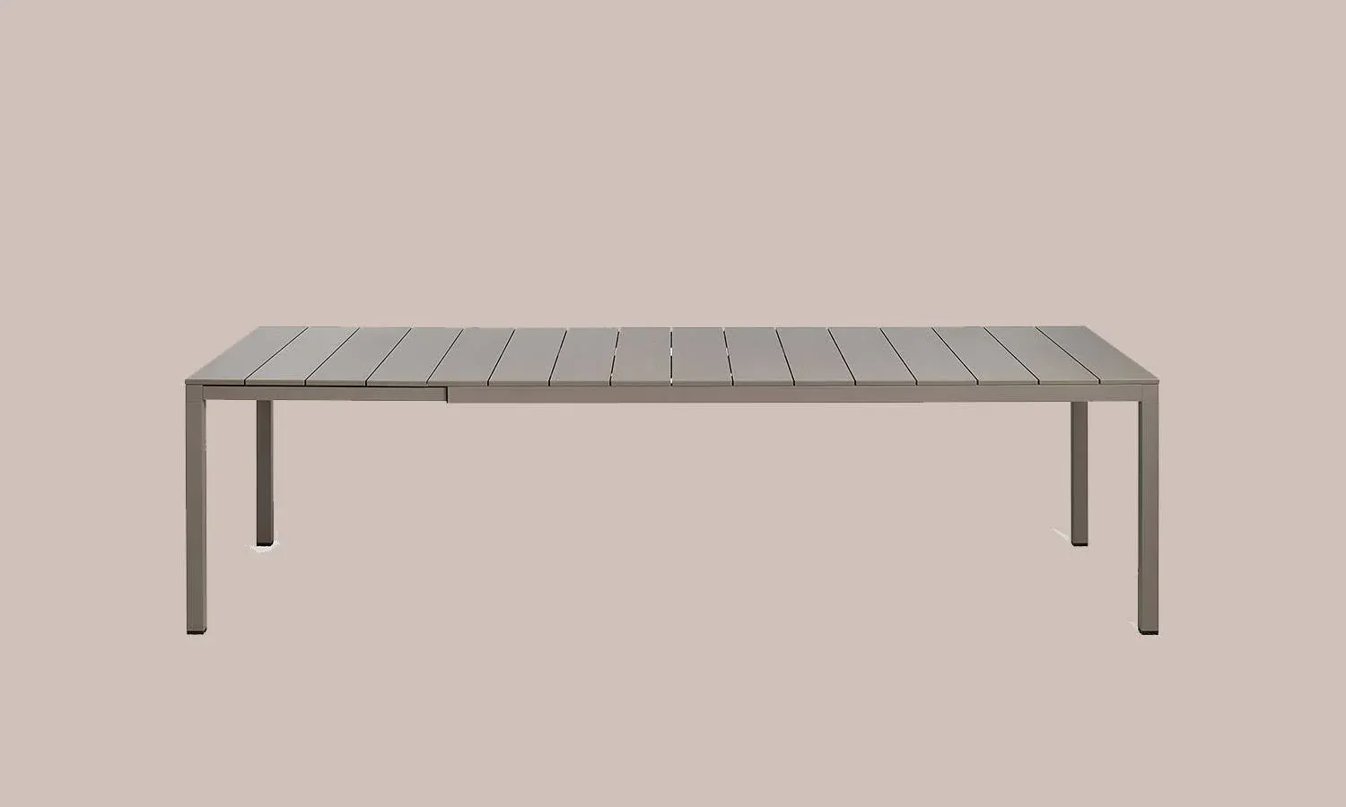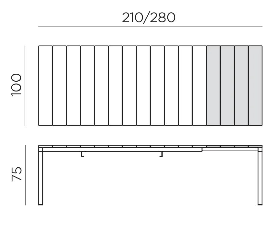 La mesa de comedor Rio Alu 210 extensible es perfecta para exteriores o interiores y llama la atención con sus detalles arquitecturales y destacada personalidad. Superficie con duelas de aluminio barnizado ligeramente rayado y estructura también de aluminio barnizado. Propuesta en dos medidas para satisfacer las diferentes necesidades de espacio.
