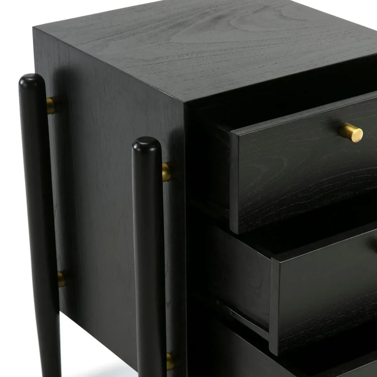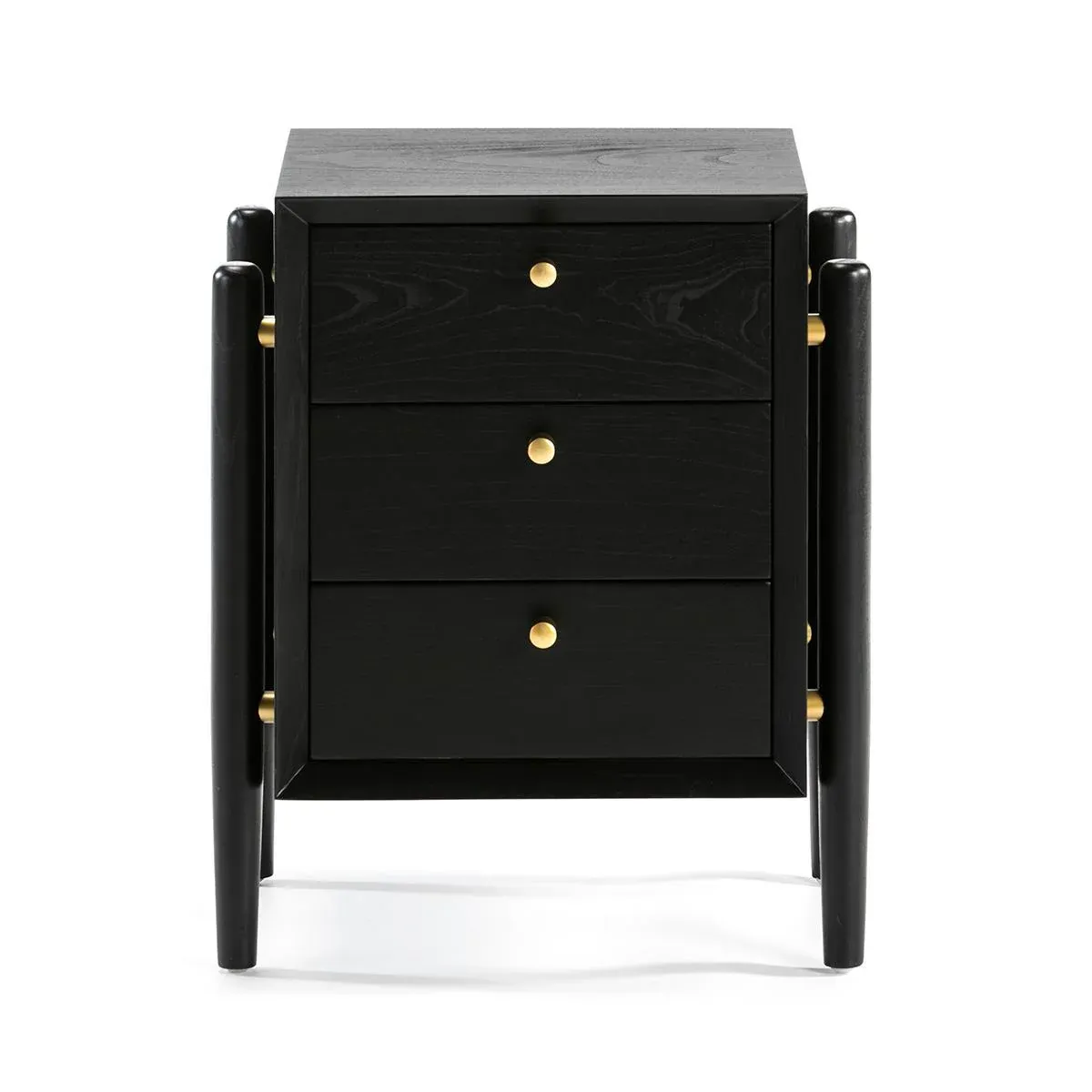 Mesita de noche de madera procedente de bosques sostenibles. Disponible en diferentes colores: Blanco, gris, marrón, negro.
