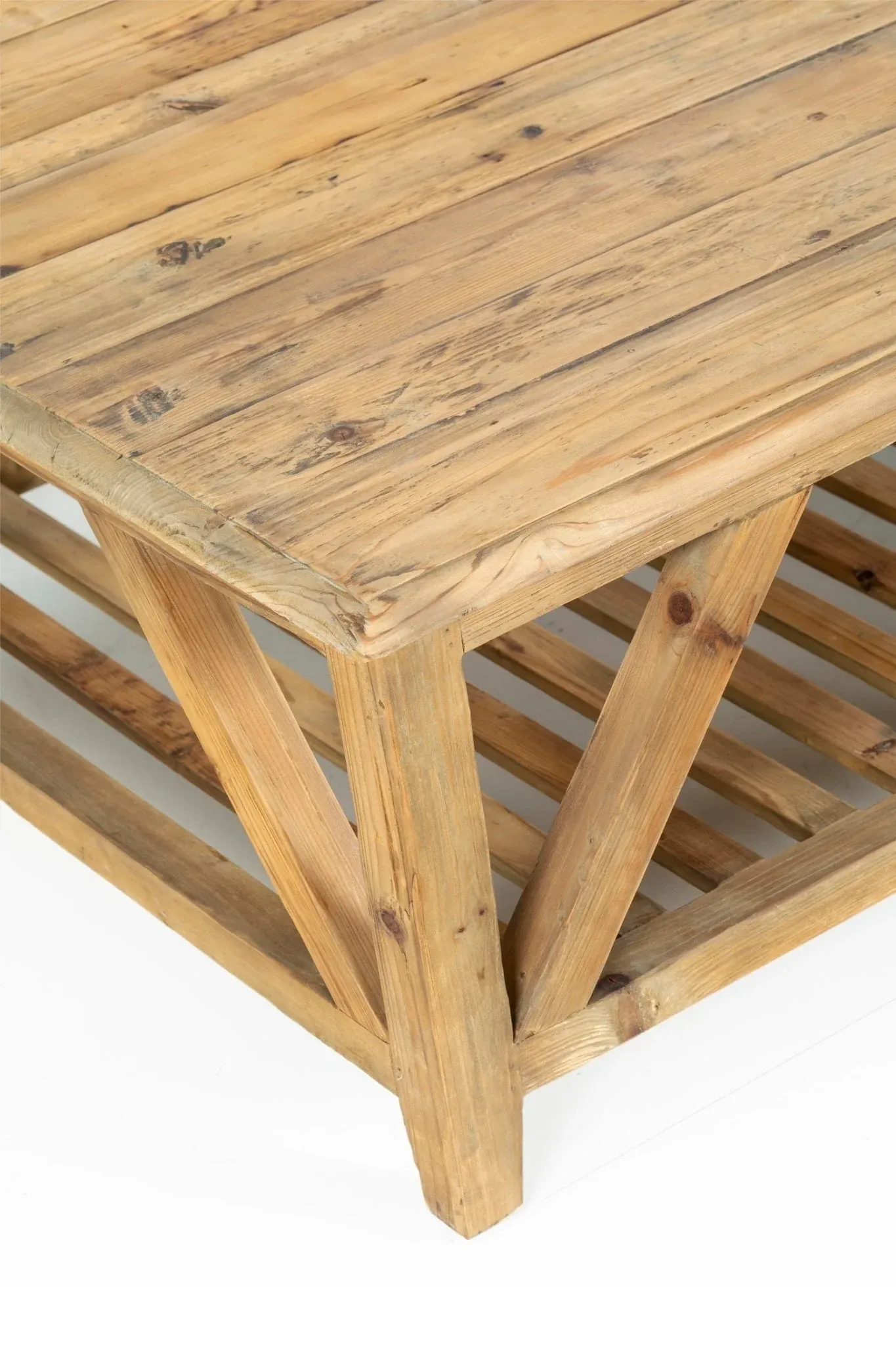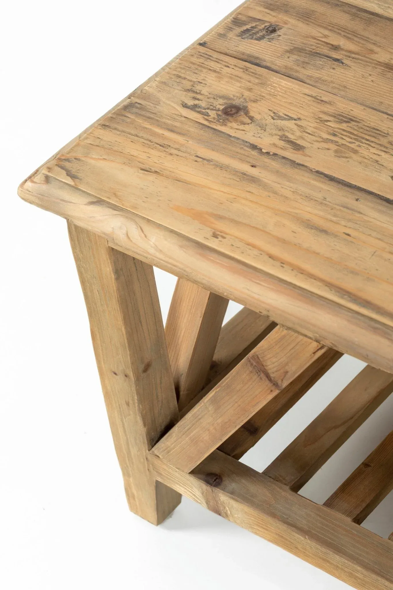 Transforma tu espacio con el encanto natural de nuestra mesa de centro de madera de pino reciclada. Cada pieza cuenta con un diseño rústico único, realzado por las marcas e irregularidades propias de su madera envejecida, que le confieren carácter y autenticidad.