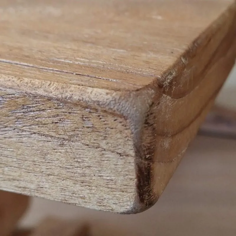 Mesa de comedor u oficina rectangular fabricada en madera maciza color natural. Las patas están decoradas y torneadas.