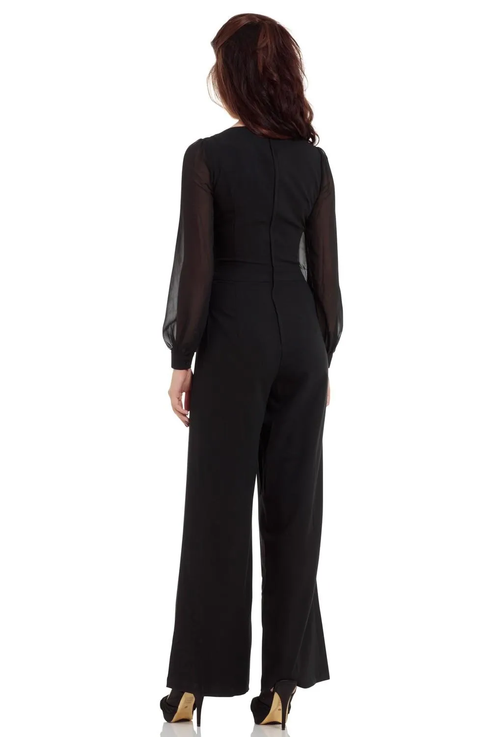 Jumpsuit negro de gasa, cremallera trasera. Ideal para ir a la oficina o para cualquier evento.