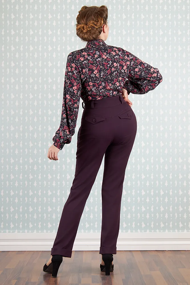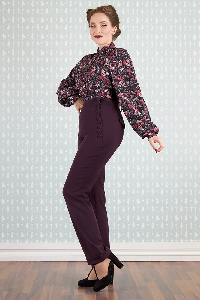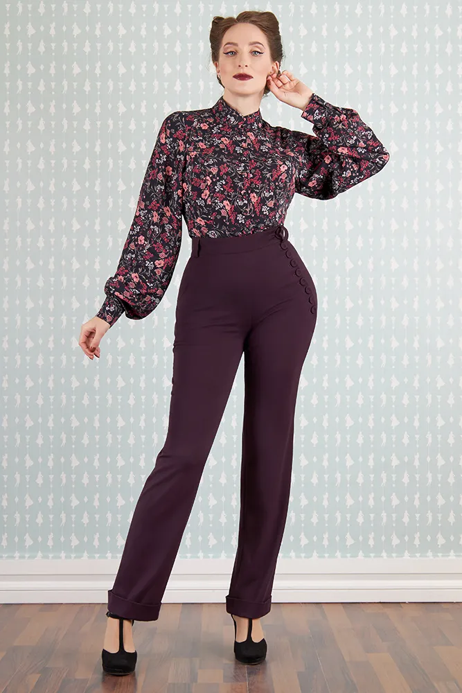 Los pantalones Nicola-Lavania combinan elegancia y comodidad, lo que los convierte en un tesoro esencial para la temporada de otoño-invierno. Su encantador tono púrpura armoniza maravillosamente con una gran variedad de conjuntos. Con un diseño de cintura alta que favorece la figura, cuentan con botones funcionales de inspiración vintage en los laterales y prácticos bolsillos, tanto en los laterales como en la parte trasera.