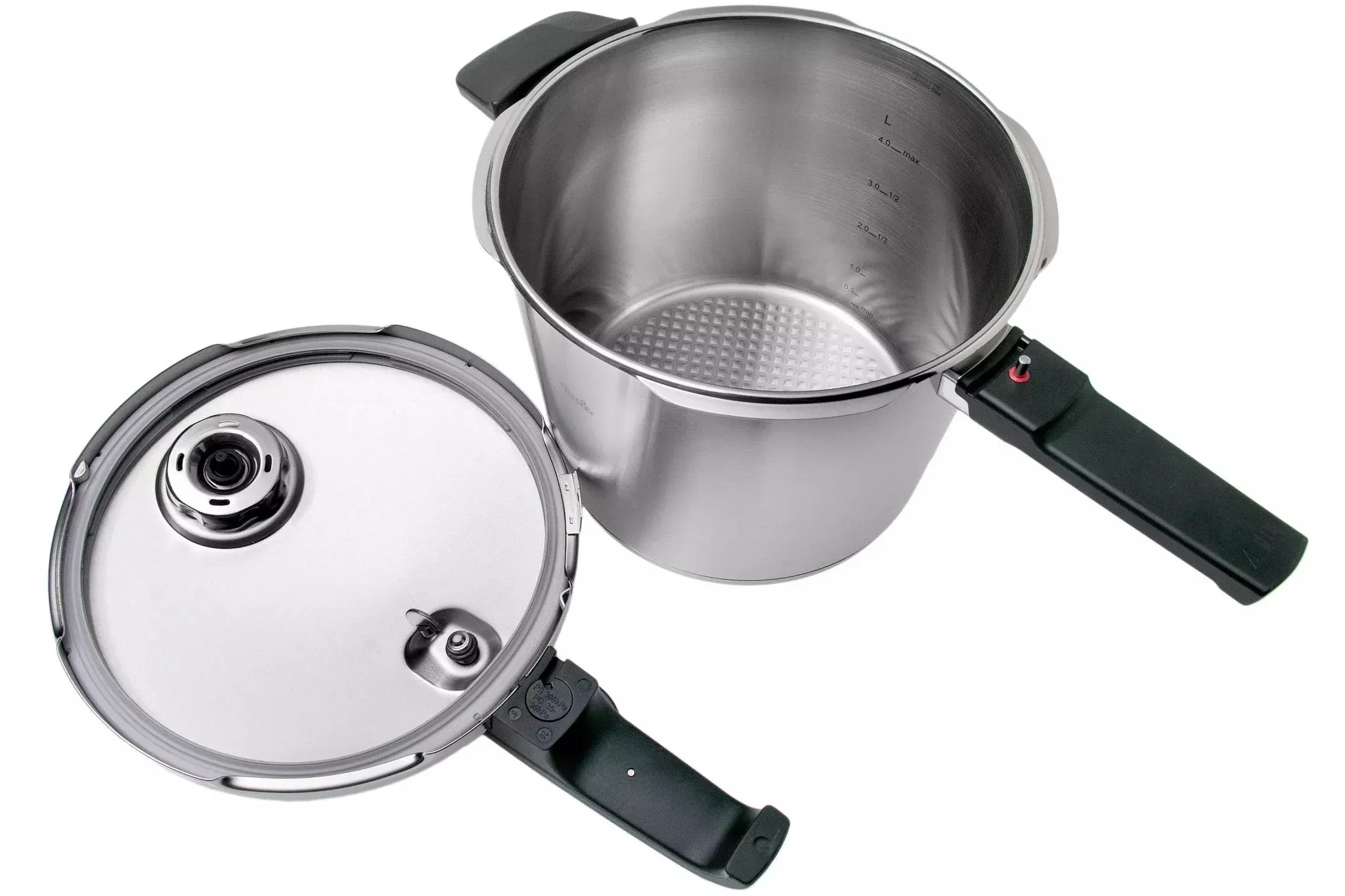 Incluye tres niveles de cocción, además de los dos niveles clásicos de cocción. La línea Vitavit® Premium ofrece una innovadora función de cocción al vapor. Funciona sin presión, de modo que podrá echar un vistazo a los alimentos, removerlos y sazonarlos en cualquier momento. Con la válvula de cocción con sistema de semáforo tricolor, cocinar con la olla a presión es simple y seguro. Amarillo, ya se puede bajar la intensidad del fuego; verde se ha alcanzado la temperatura fijada y empieza a descontarse el tiempo de cocción y rojo la temperatura es demasiado alta y se debe bajar la presión.
