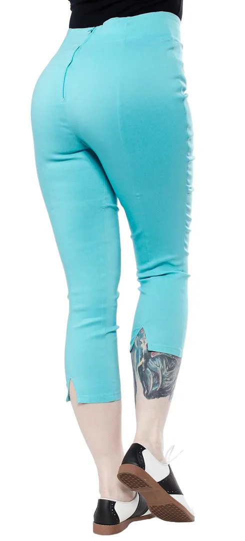 Pantalon elastico capri con cremallera trasera en color turquesa. Muy comodo. Sienta fenomenal! Todos los colores disponibles, no podras tener solo uno!