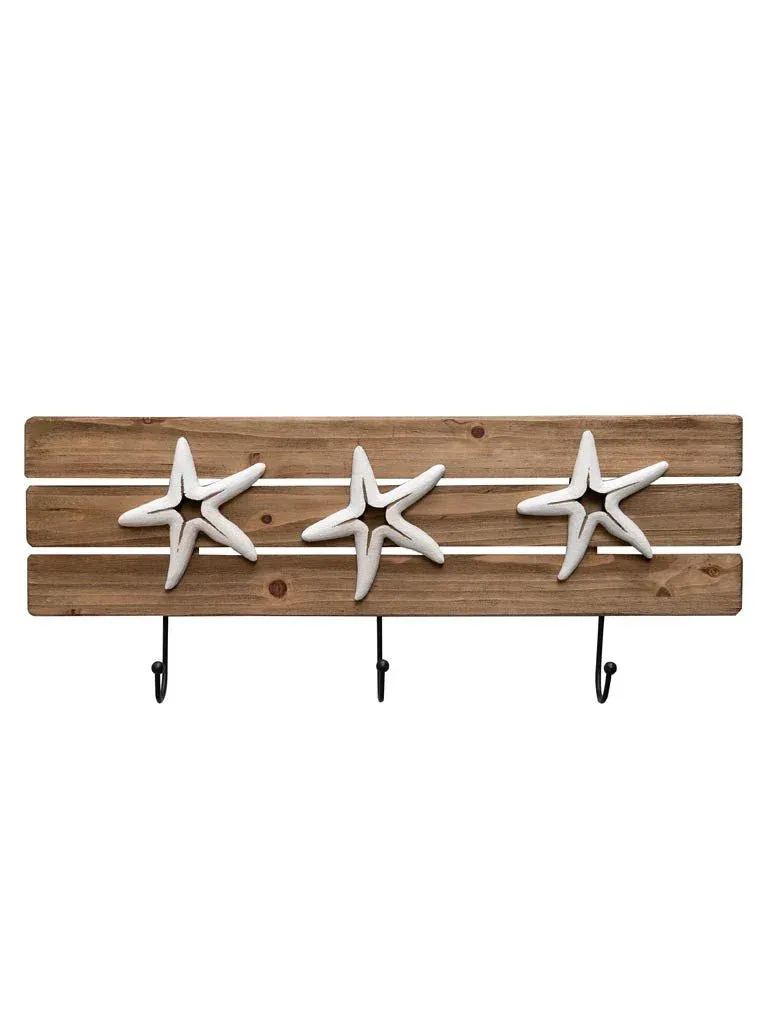 Original perchero fabricado en madera con detalles en cuerda en forma de ancla en colores natural, rojo, azul y blanco.