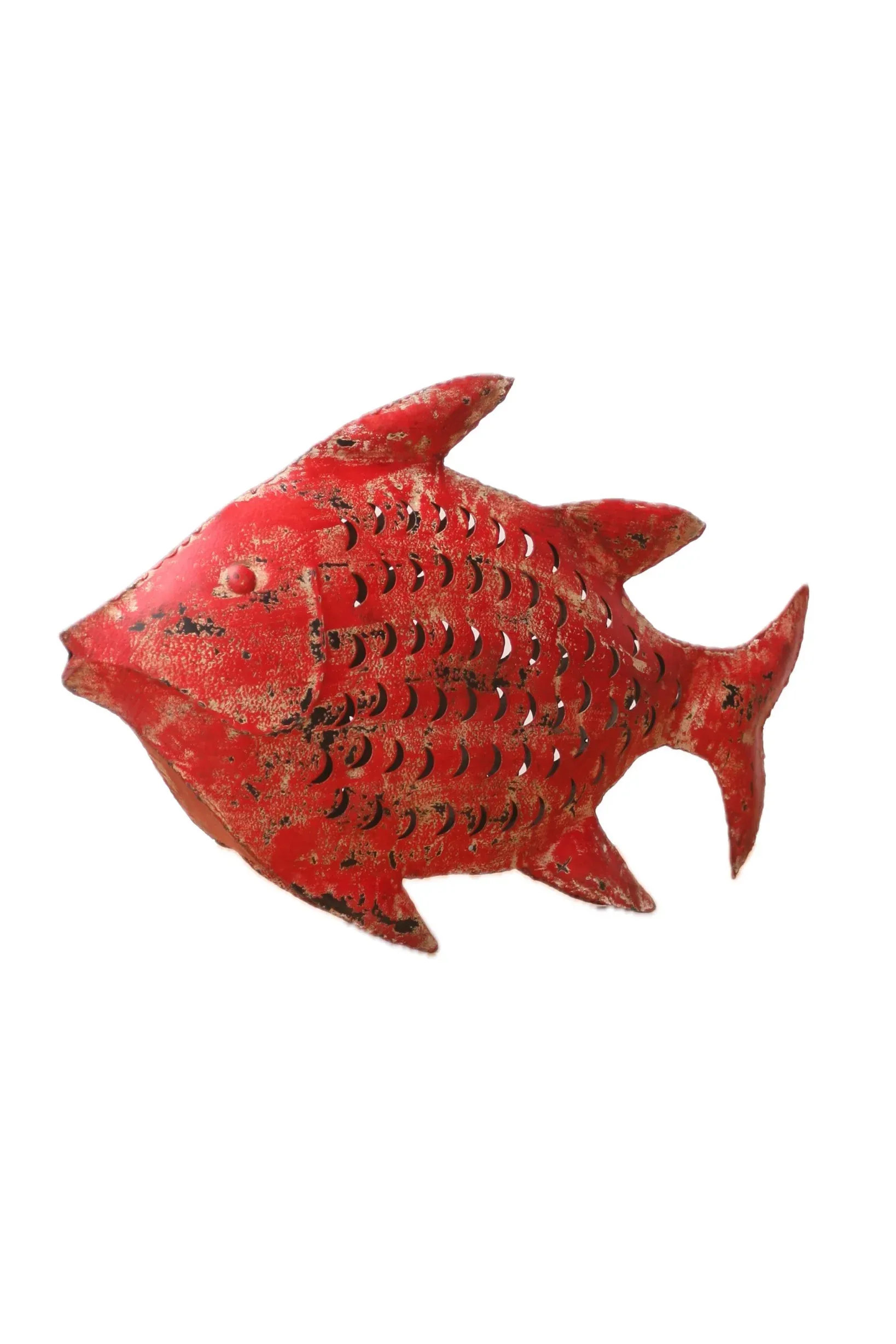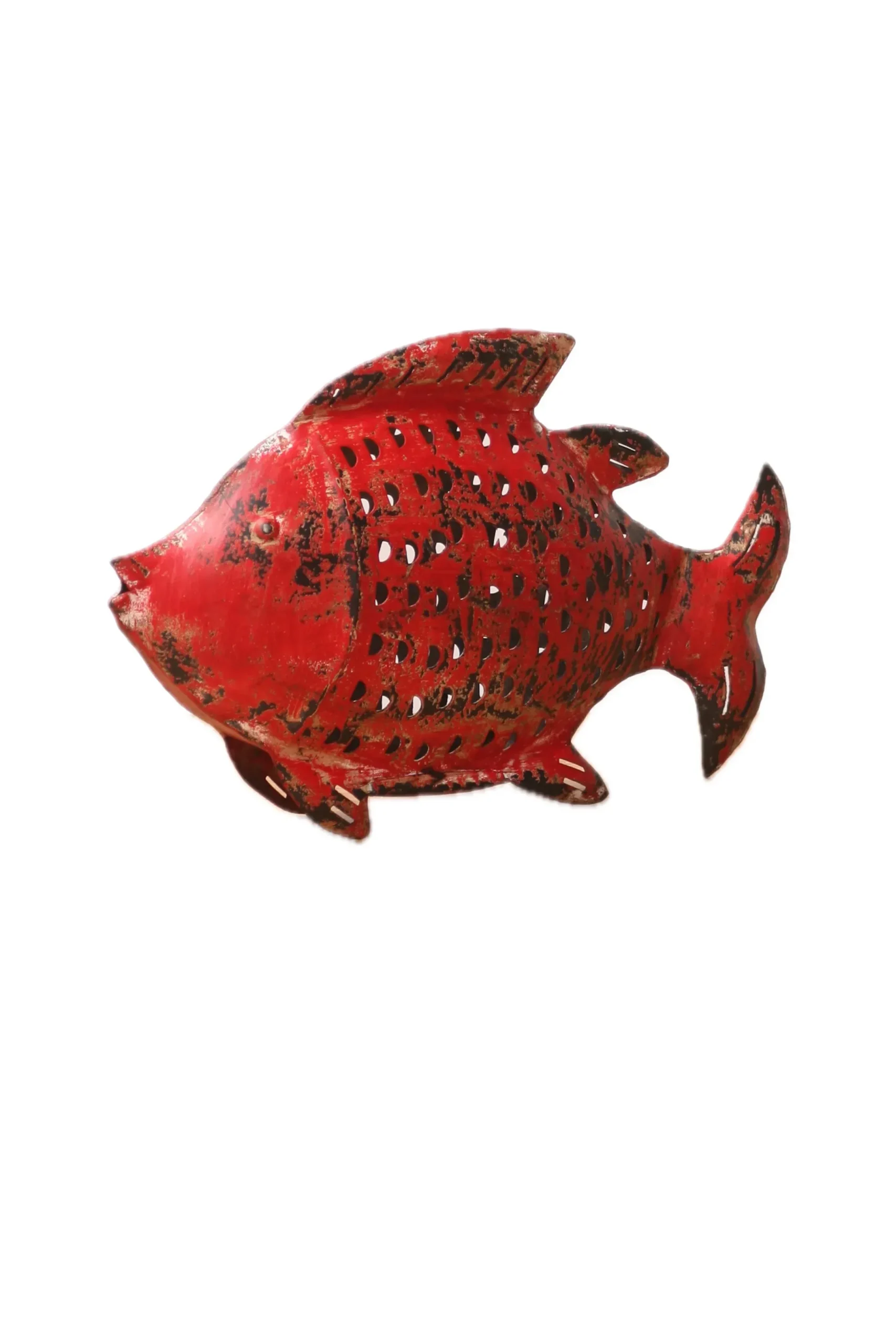 Pez de hierro fabricado en metal de color rojo. Se soporta sobre sí mismo de pie. Disponible en varios tamaños: