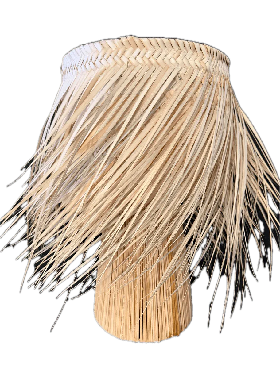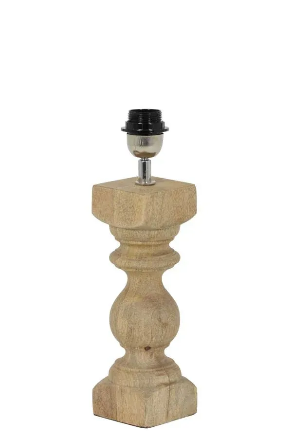 Lámpara de sobremesa fabricada en madera en colores marrón y natural. Casquillo para bombilla E27, bombilla no incluida.