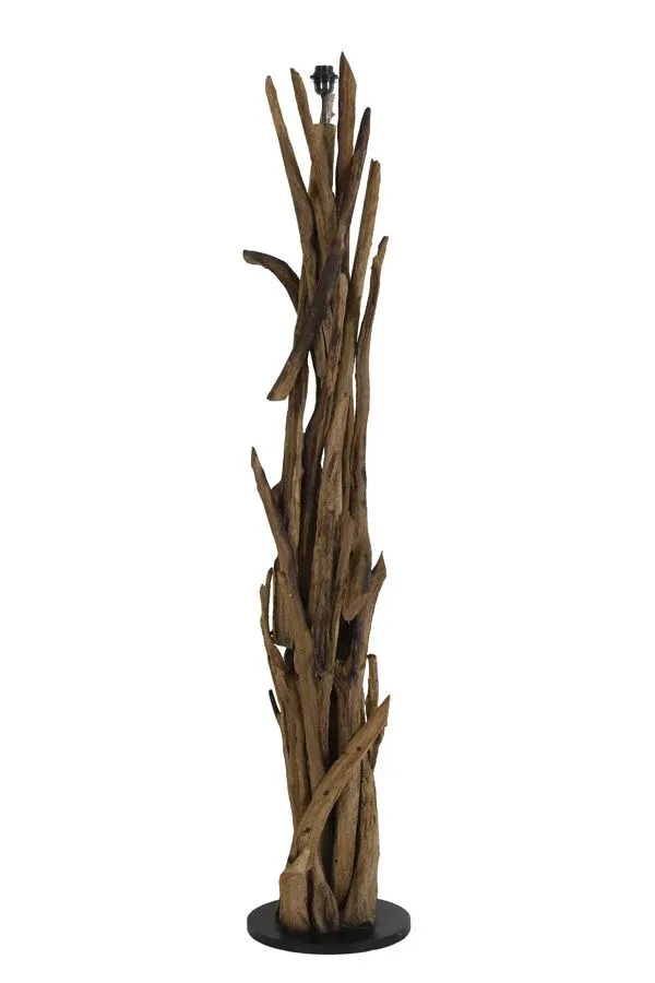Precioso pie de lámpara de suelo fabricado en madera color marrón.