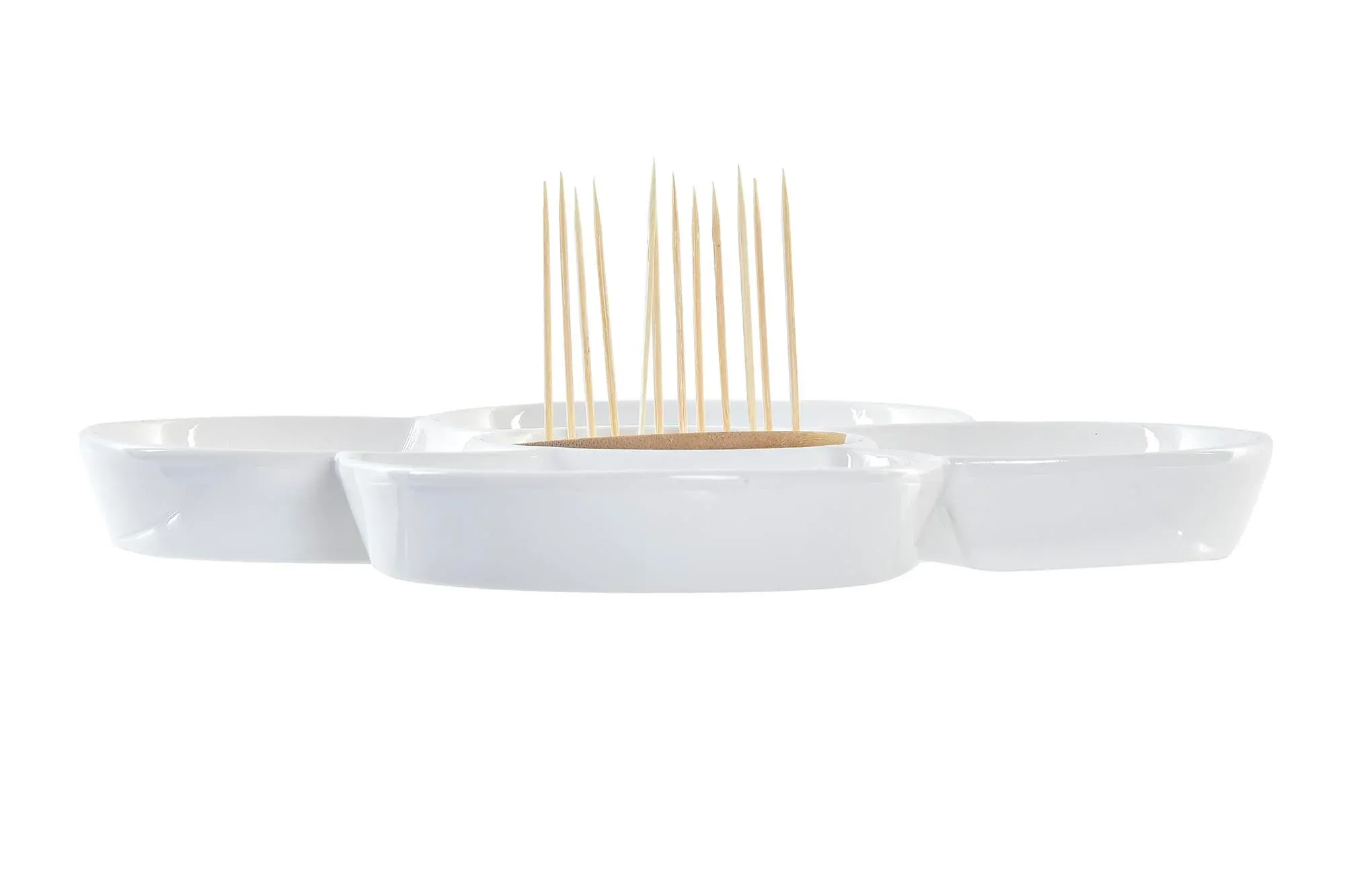 Plato de aperitivo fabricado en gres y tapa de bambú con motivos náuticos.