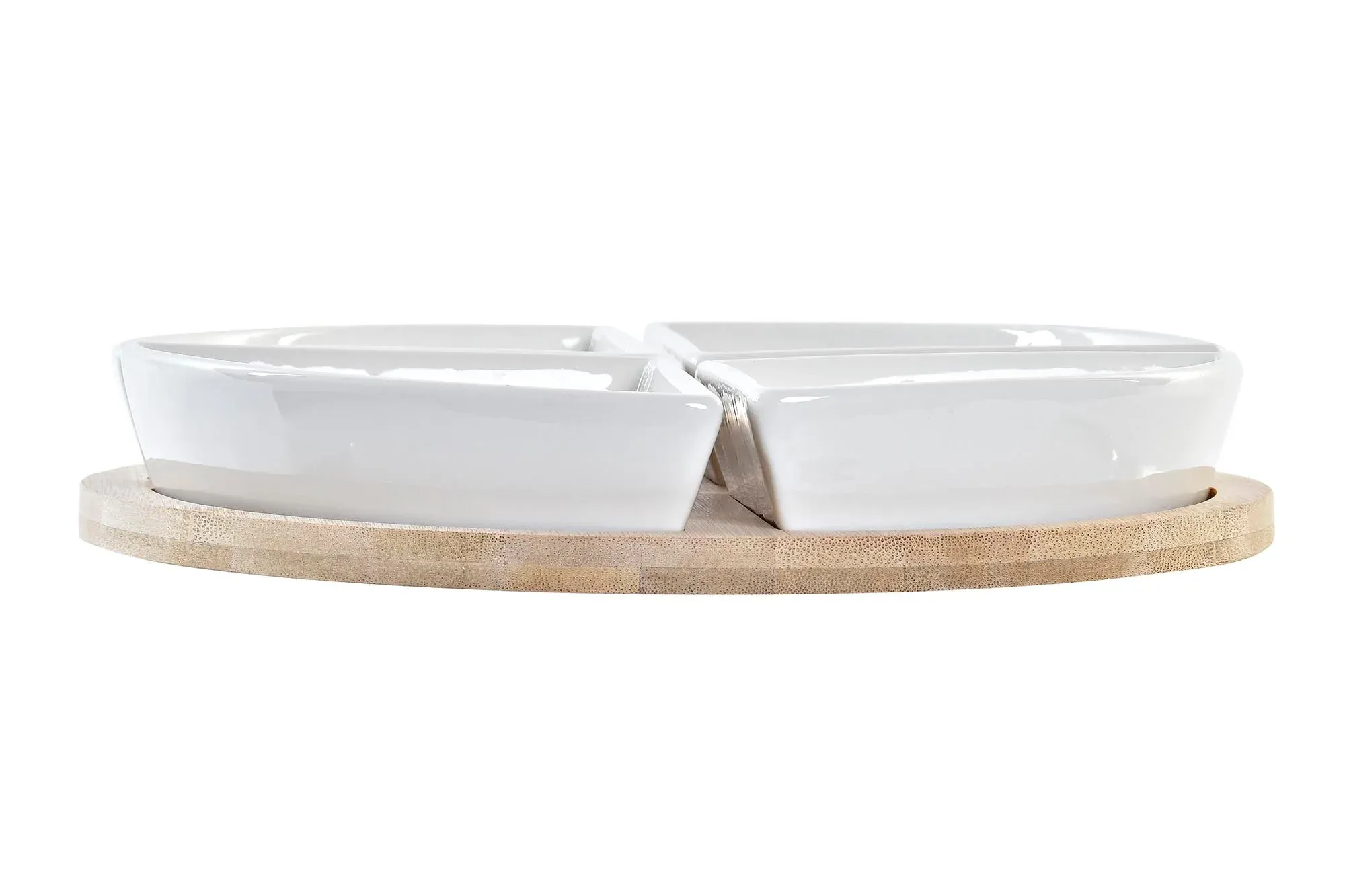 Plato de aperitivo fabricado en gres y base de bambú con motivos náuticos.