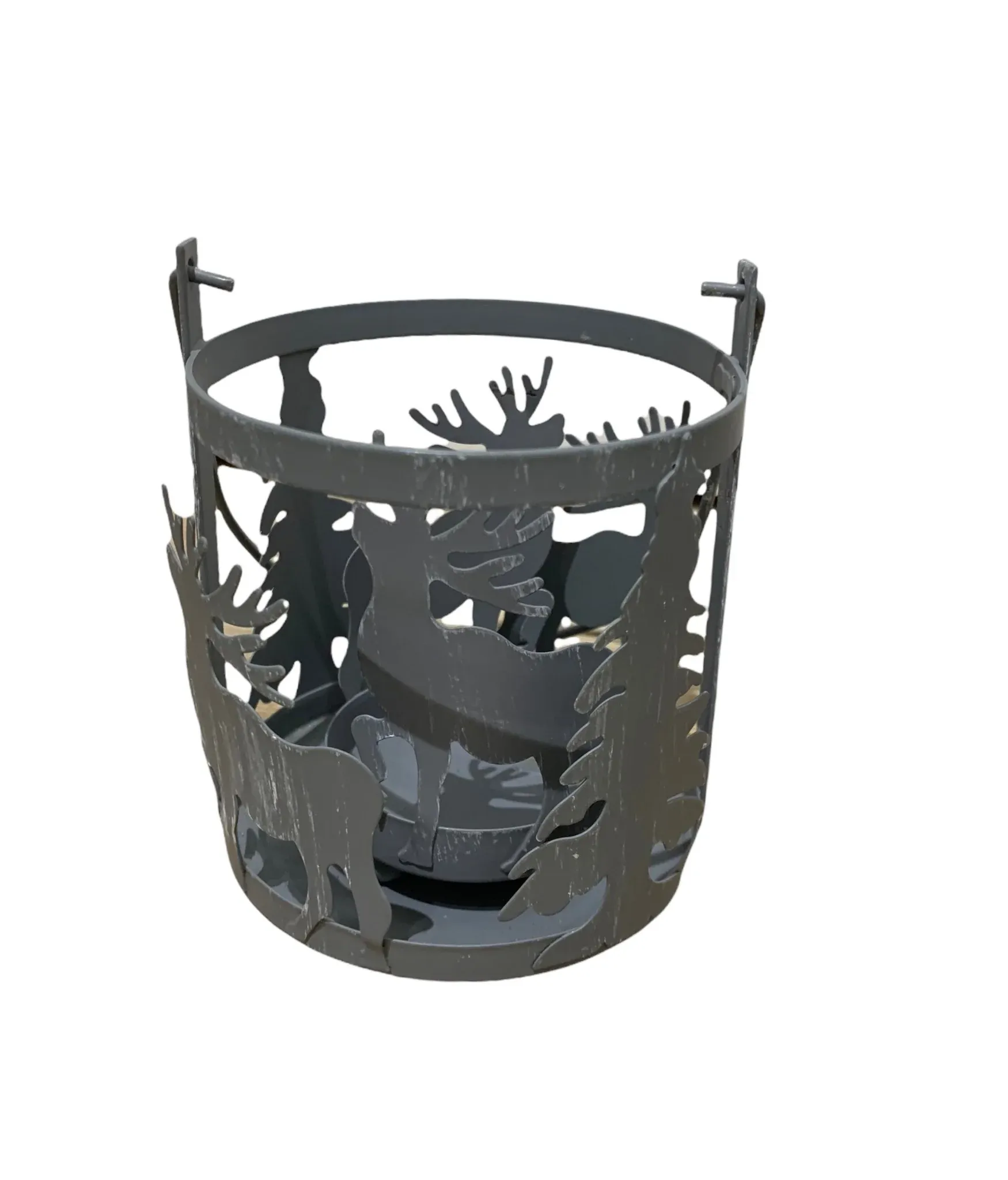 Original portavelas fabricado en metal con motivos navideños en color gris.