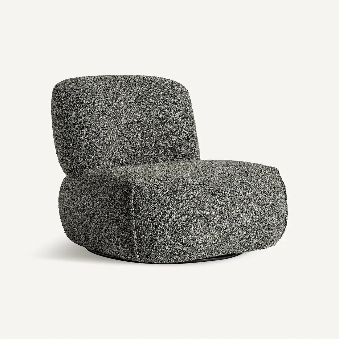 Reposapiés giratorio de diseño moderno tapizado en piel color marrón chocolate con estructura interna de madera de cerezo y original base de acero macizo inoxidable color negro.