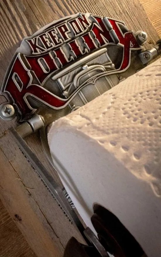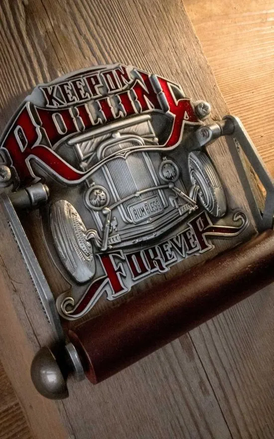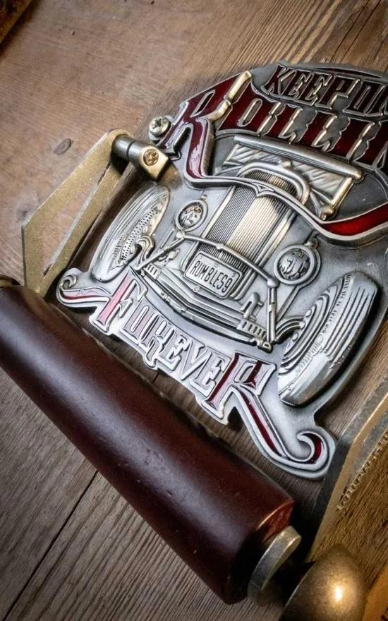 Rodillo de madera de haya lacada en rojo, gofrado en relieve con lacado parcial 2 agujeros de 5 mm para montaje.