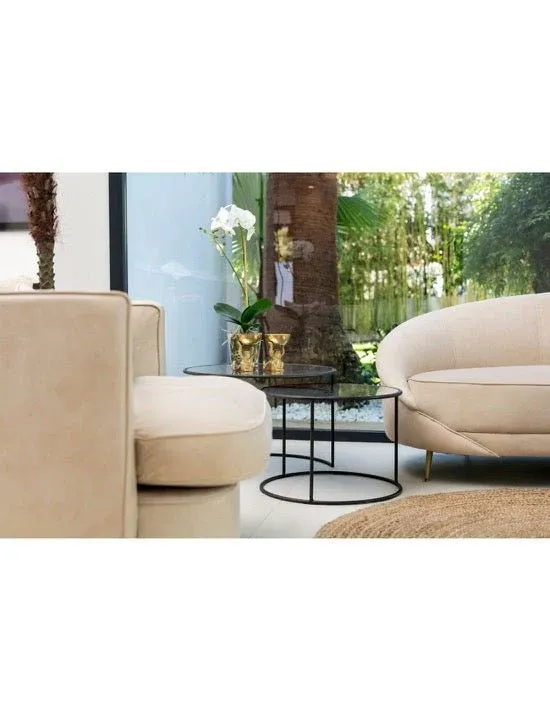 Mesas bajas redondas de cristal y metal de color negro. Mesas de estilo industrial y de tamaños diferentes donde te permitirán estructurar el salón a tu antojo. Muy prácticas para amueblar espacios reducidos, estas mesas bajas también podrán ser útiles como mesita auxiliar para apoyar una lámpara o una plantita. Fácil de combinar para una decoración actual y moderna.