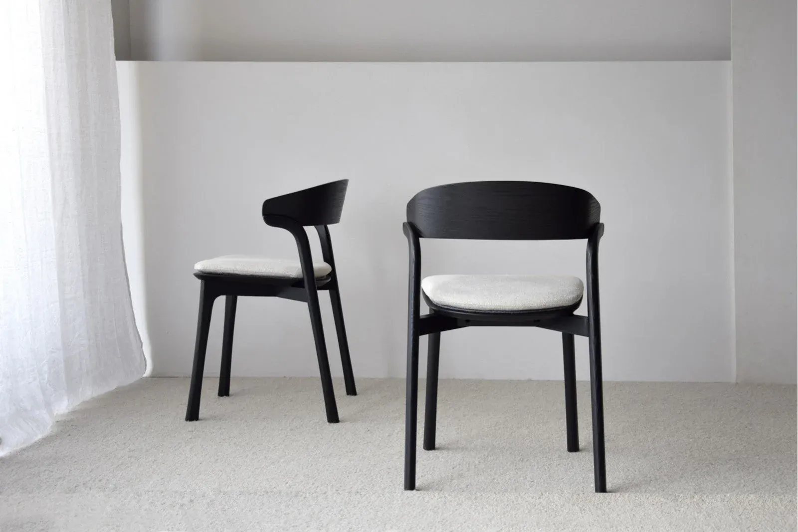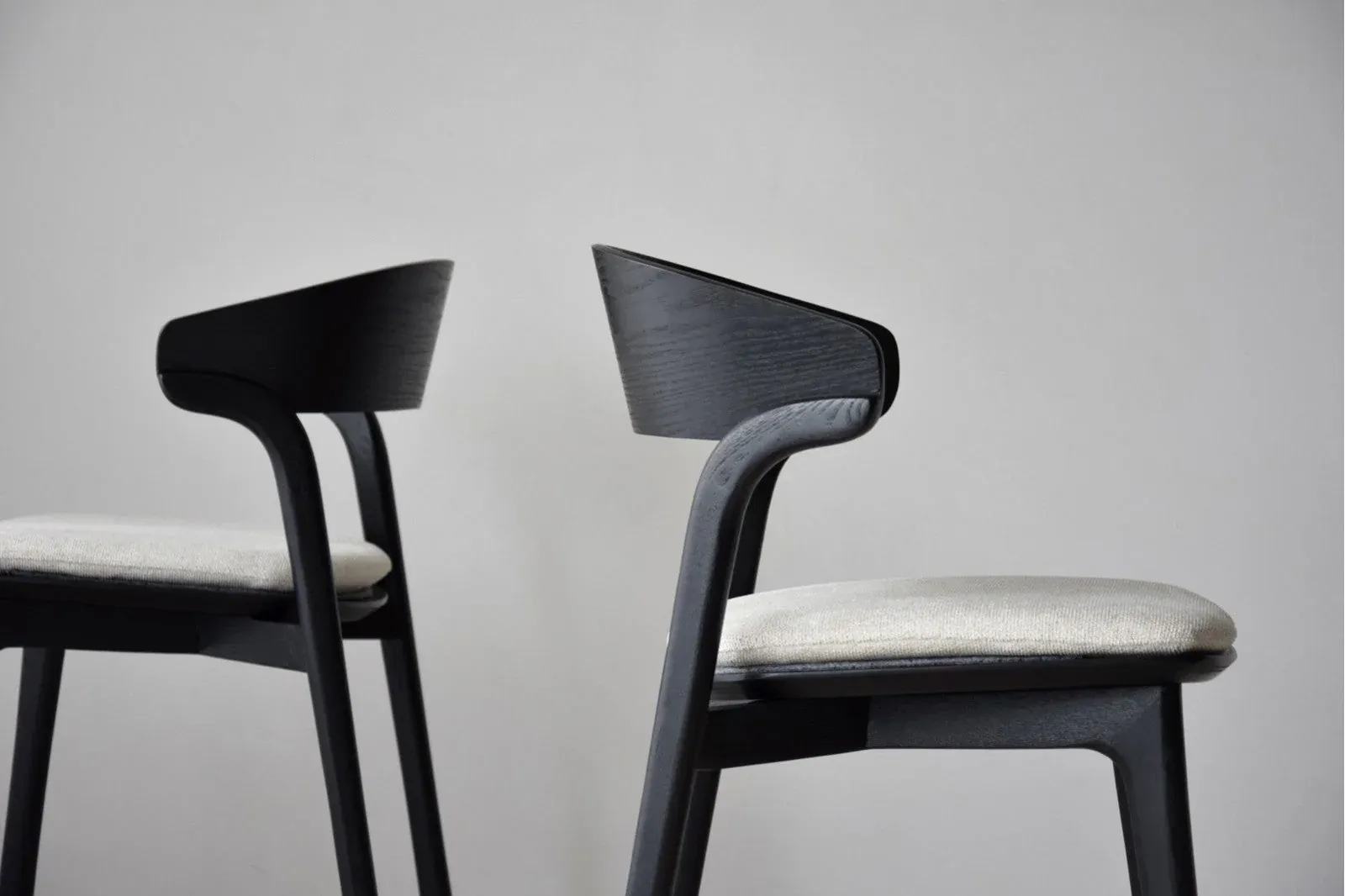 Set de 2 sillas de comedor realizadas en madera maciza de fresno acabado barnizado en dos tonos negro y marrón. Se trata de una estética fresca que une confort y estilo, se ha añadido un cojín removible para hacerla más confortable.