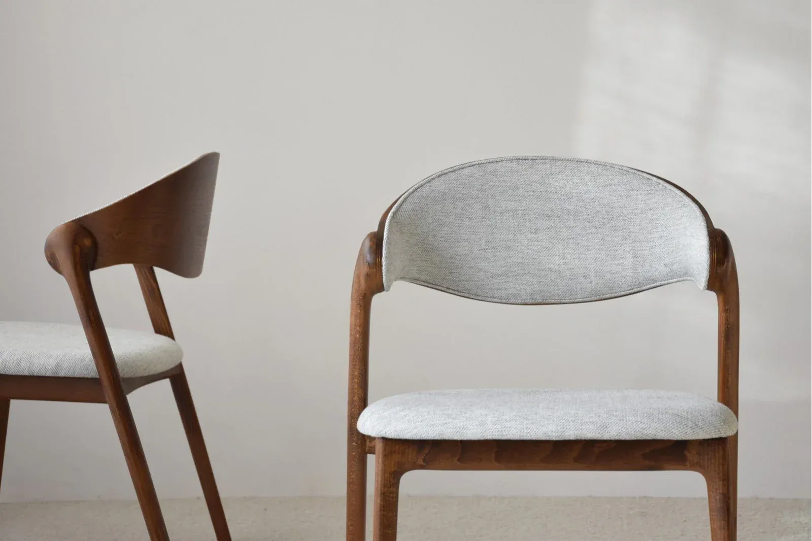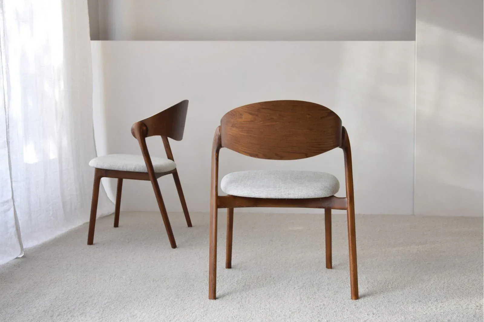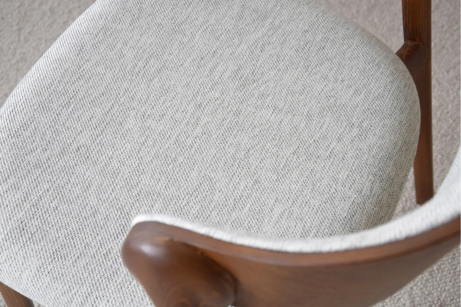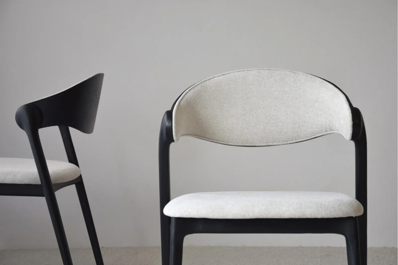 Precioso set de 2 sillas de comedor en madera maciza de haya y acabado barnizado en color castaño y negro , tapizada el asiento en tono blanco gris y beige. Original diseño contemporáneo, confort y estilo se unen aportando personalidad a cualquier estilo de comedor