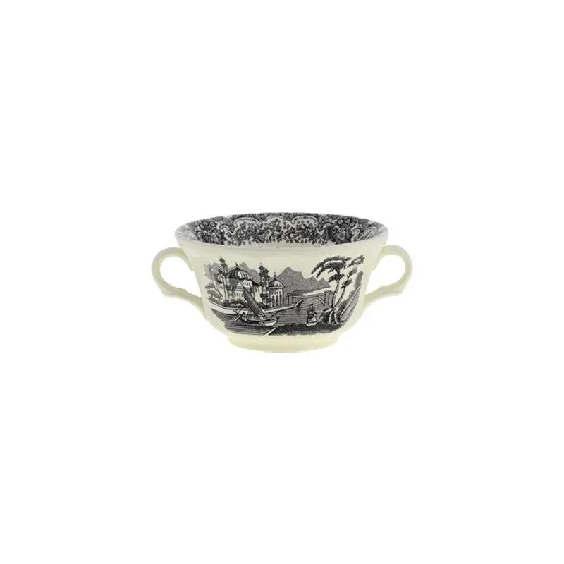 Set de 4 Tazas de Consomé con Platillo colección Negro Vistas de La Cartuja de Sevilla.