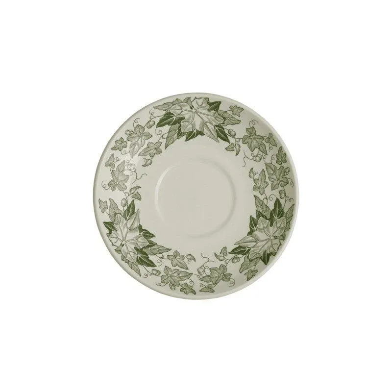 Inmersión en el verde profundo. Nuestro decorado Yedra evoca un paseo en el jardín veraniego de una casa de familia, el frescor de lo vegetal lleno de vida. Sobre una mesa de espíritu sencillo y tradicional, esta vajilla Ochavada recuerda inmediatamente los colores de antaño.