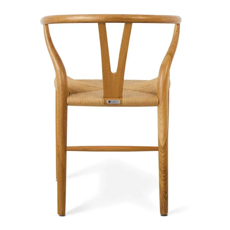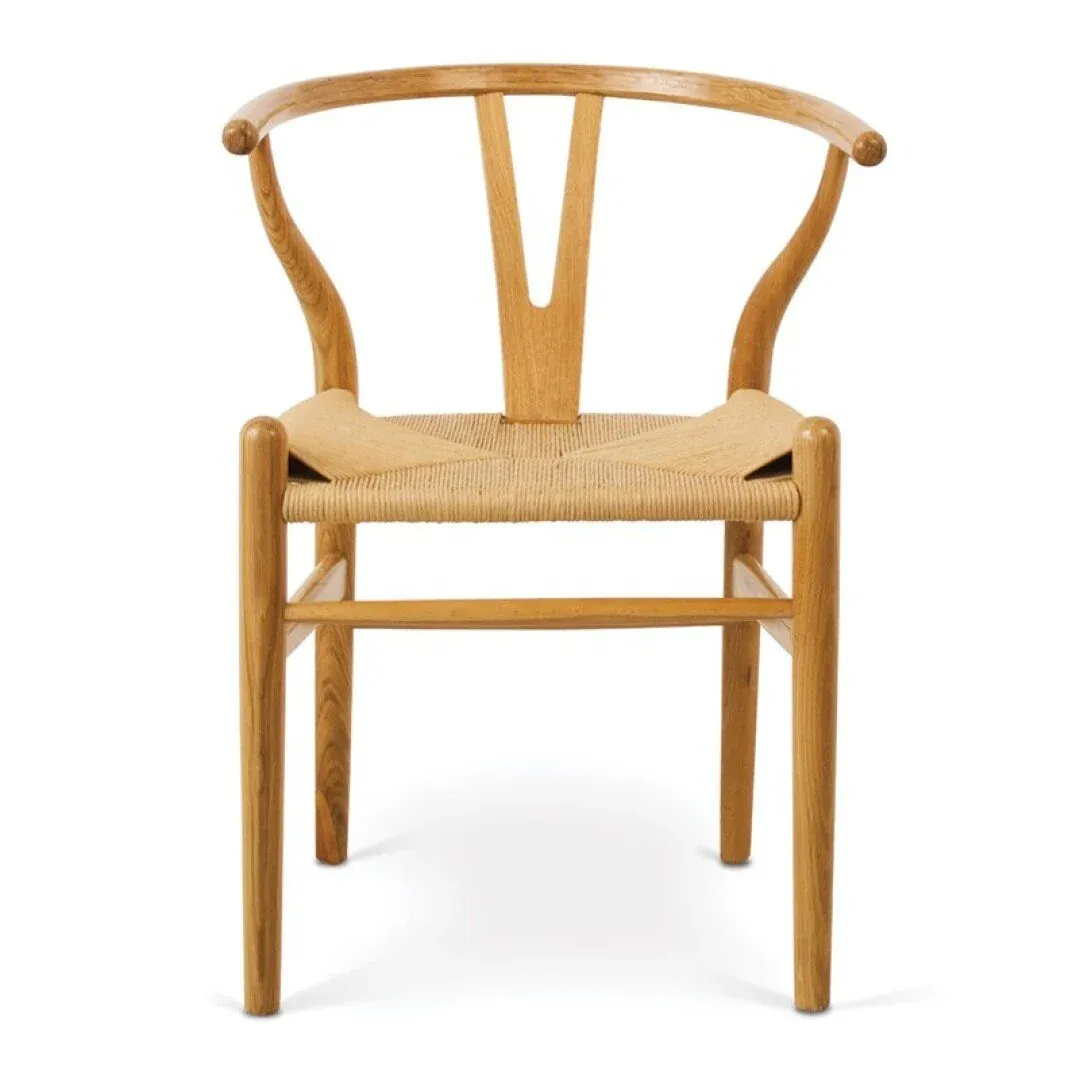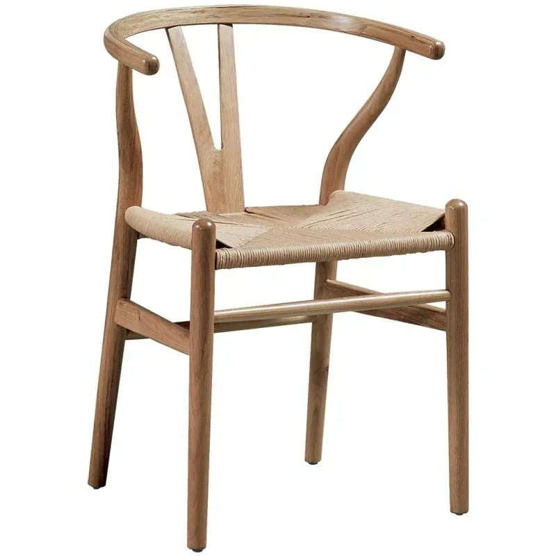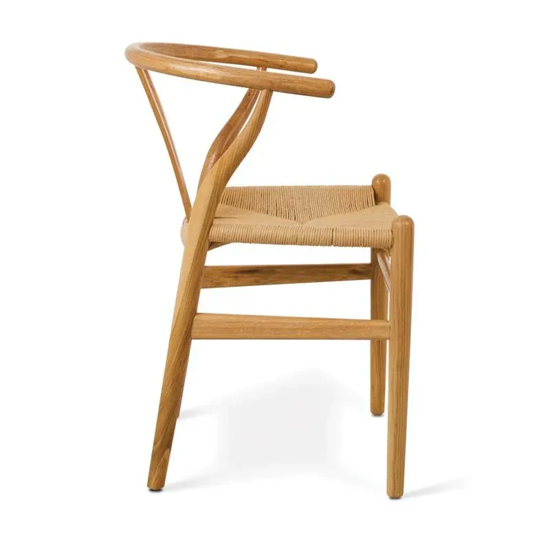 Preciosa silla de madera de roble con asiento de cuerda de papel color natural. La estructura de madera está disponible en color natural.