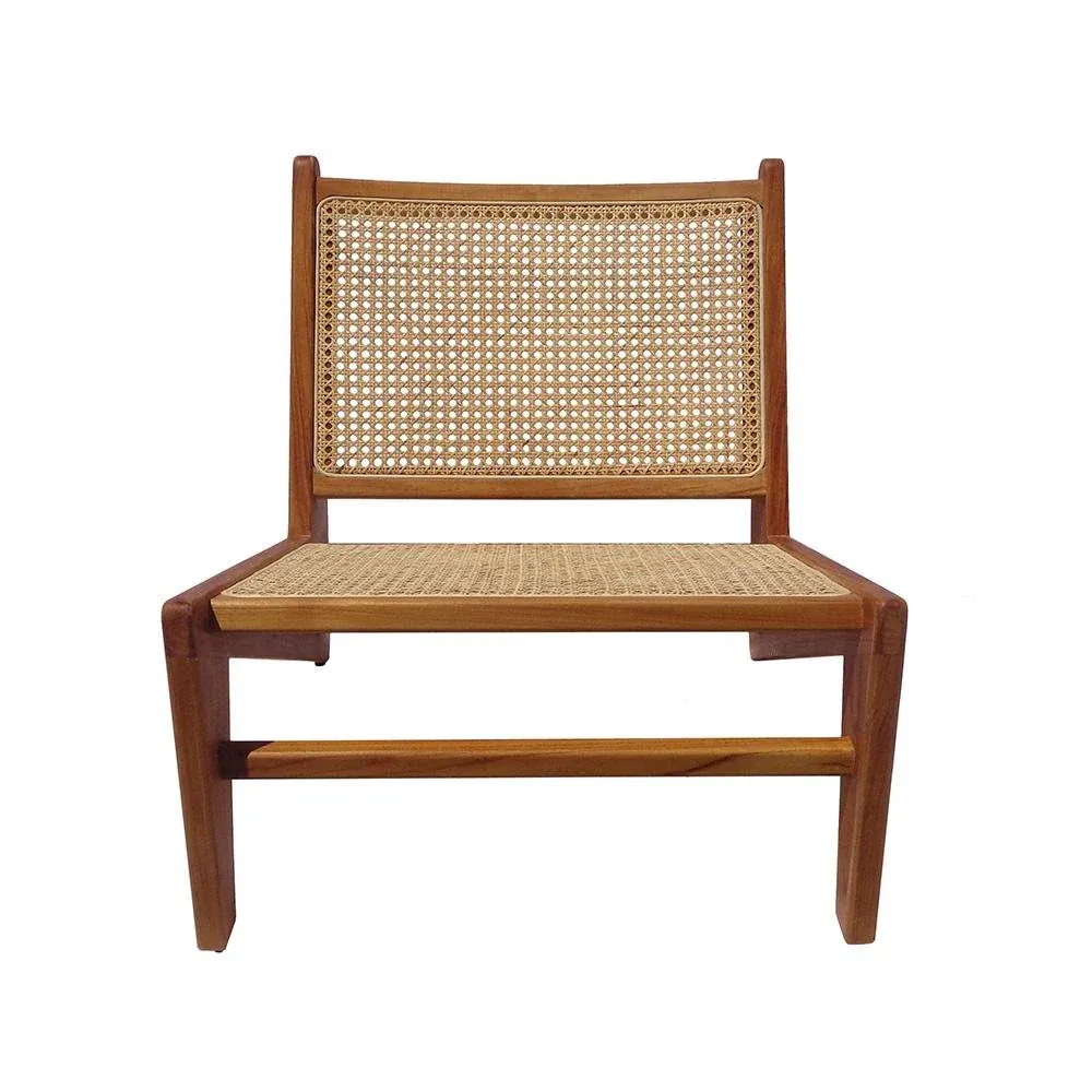 Sillón de madera de teca y ratán en color natural.