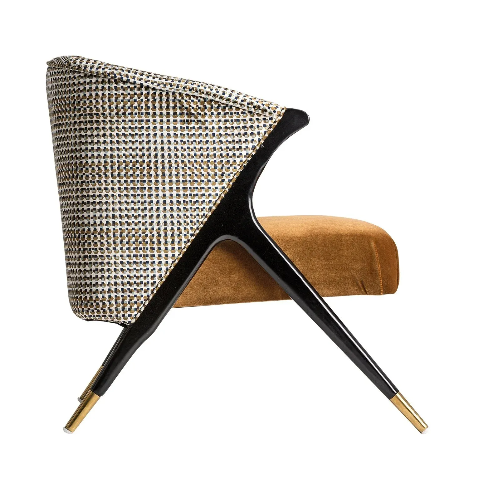 Sillón de madera de caucho y madera de pino en color negro, oro y ocre de estilo art decó.
