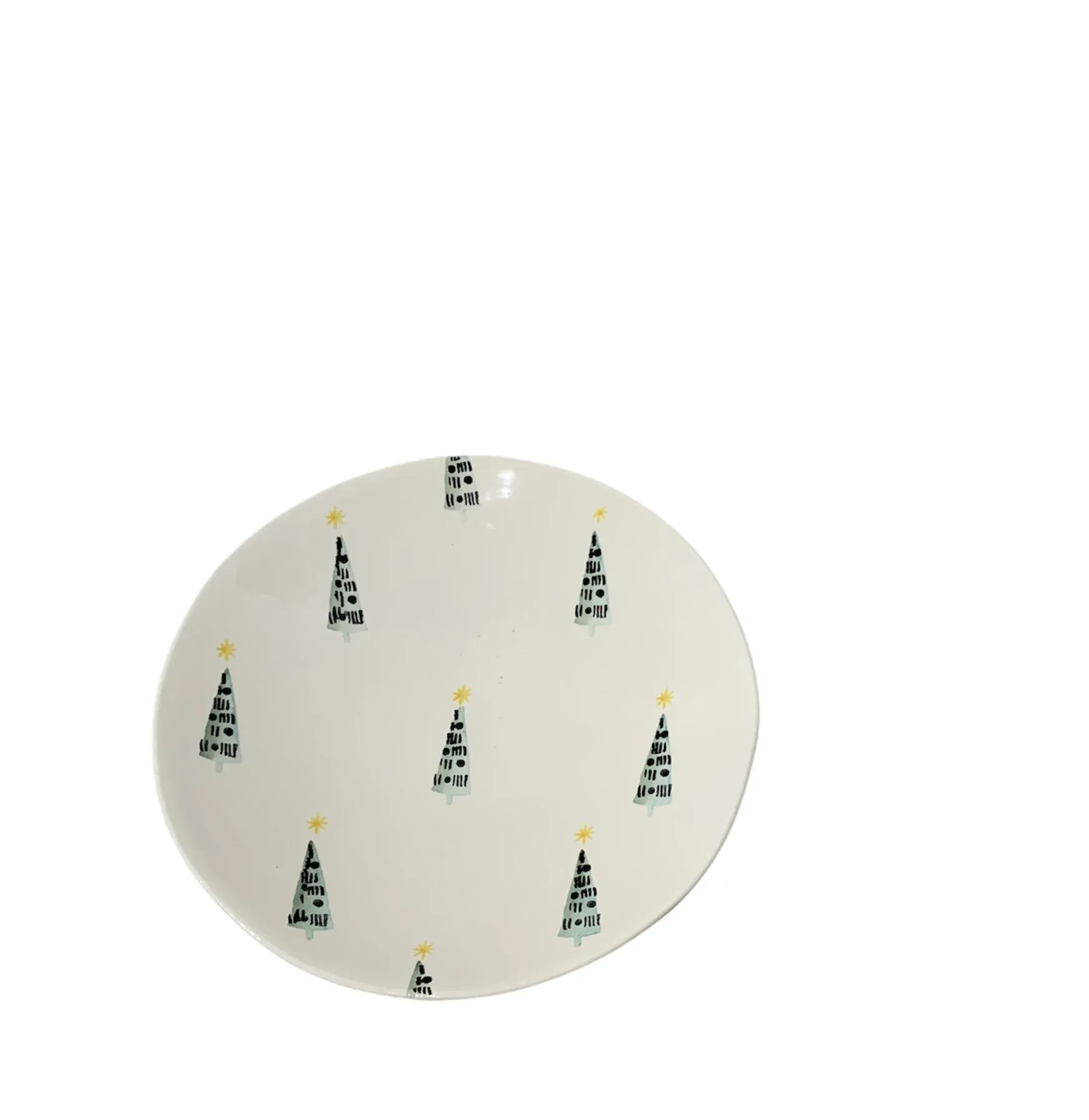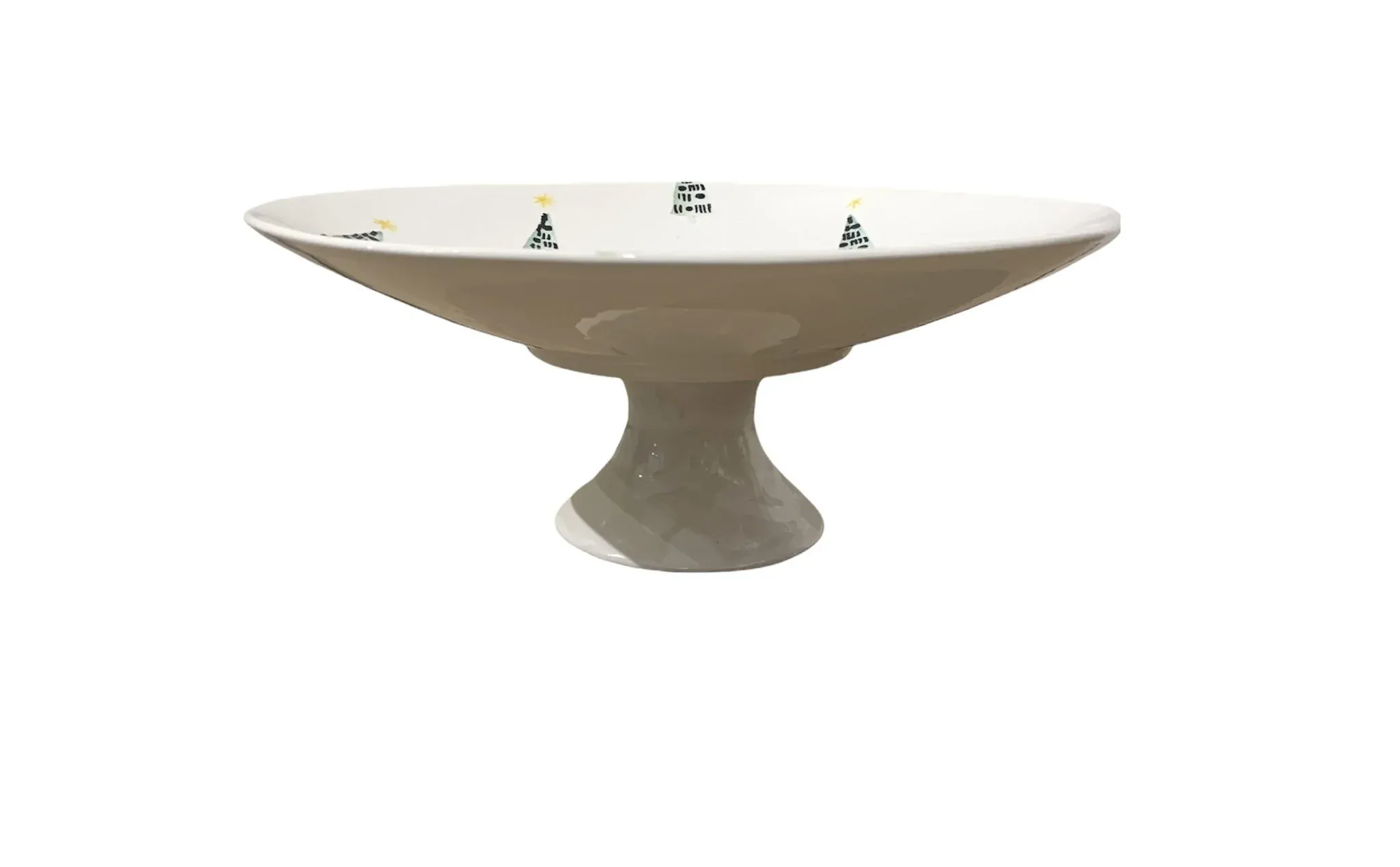 Ideal soporte para tartas o pasteles fabricado en cerámica de color blanco. Está decorado con pequeños árboles de navidad que le dan un toque único.