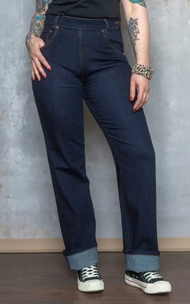 Estos vaqueros elásticos combinan un estilo clásico con detalles informales y una comodidad excepcional. En un precioso azul índigo, son perfectos para cualquier combinación. Con los vaqueros rectos “Pedal to the metal”, las mujeres pueden pisar a fondo los pedales de los vehículos bien motorizados durante todo el año. En verano, les gusta llevarlos más arremangados para que les resulte más fácil impulsar los vehículos de dos ruedas al máximo rendimiento. Con esto en mente: ¡a pisar a fondo, chicas!