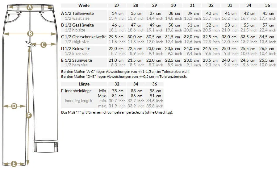 Información: ¡Las medidas en la tabla de tallas se miden SIN dobladillo!