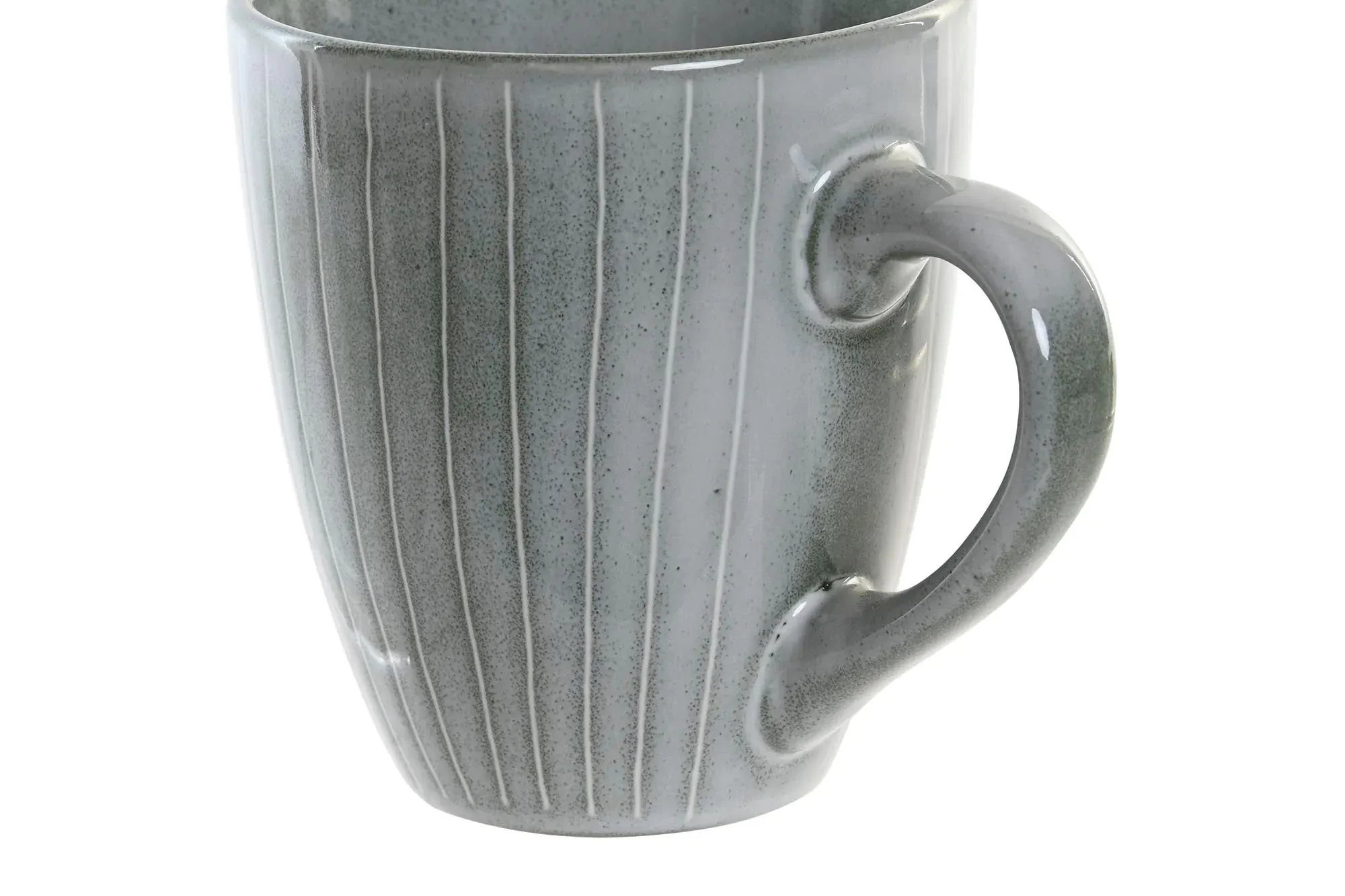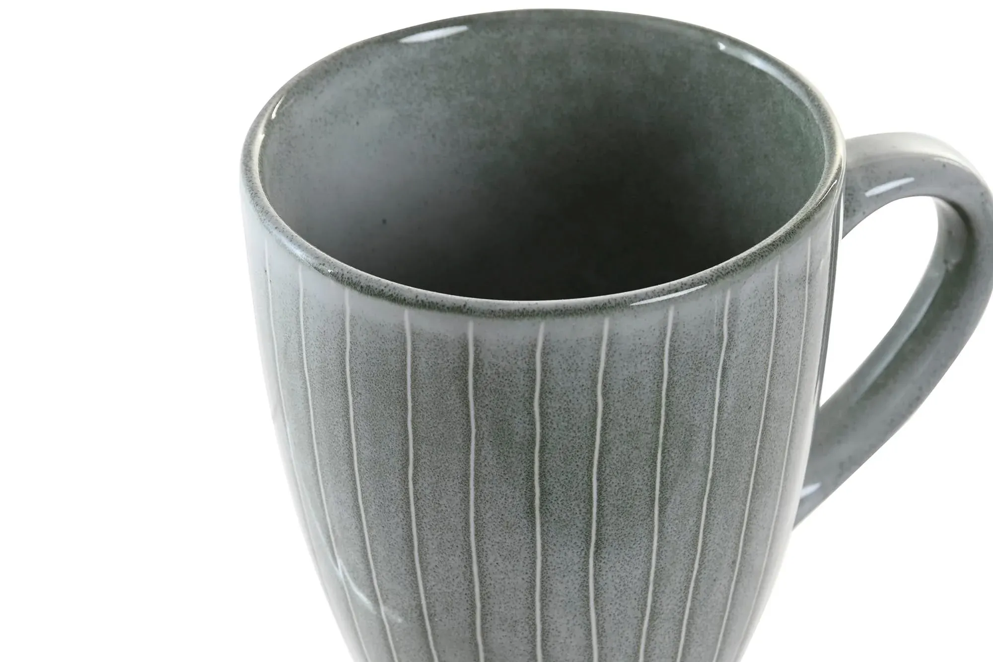 Preciosa taza fabricada en gres esmaltado en color verde rayado.
