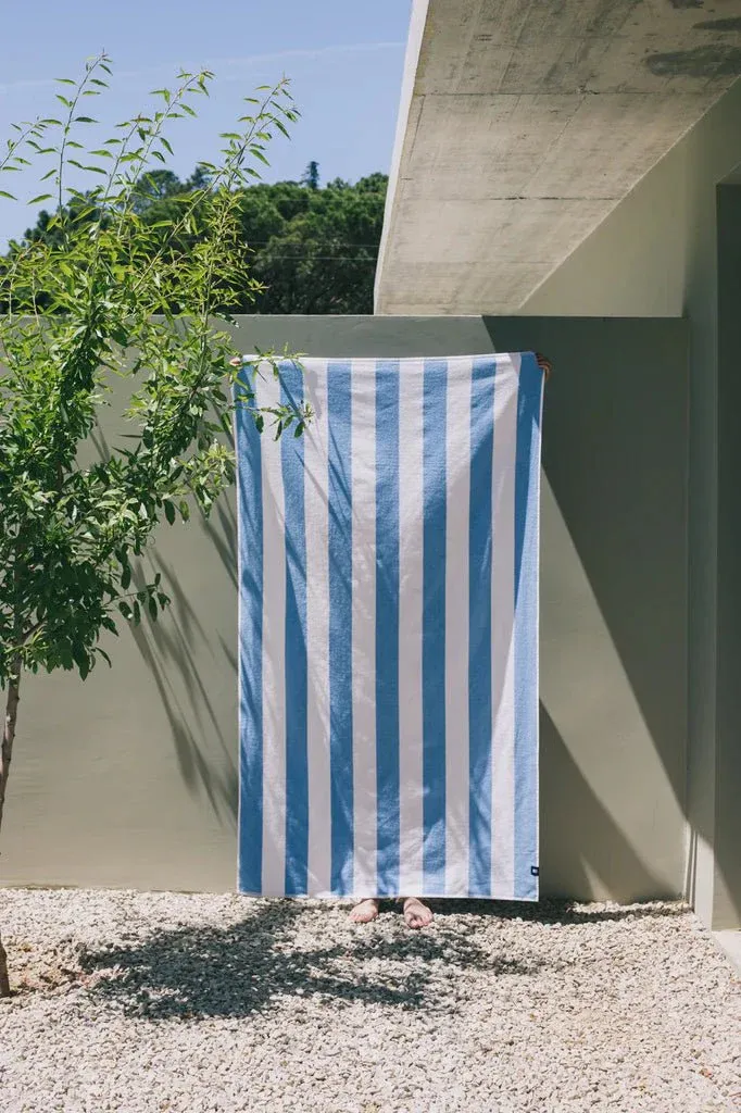 Toalla de playa Gibalta con rayas verticales en dos colores que evocan un cierto imaginario vintage. Fabricadas con rizo laminado y 420 g/m² de algodón.