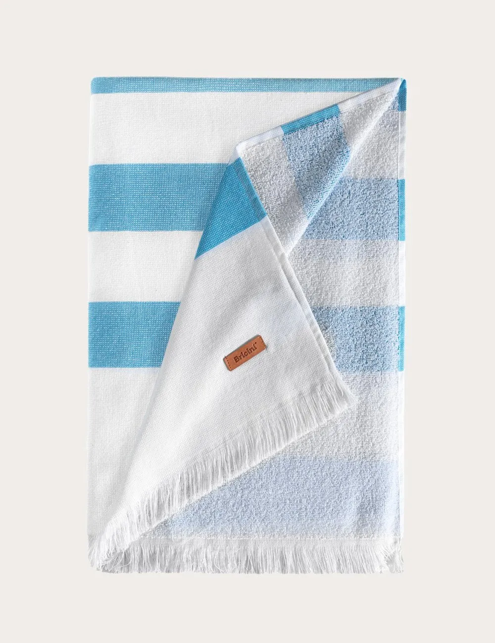 Preciosas toallas de playa fabricadas en 100% algodón muy suave a rayas de diferentes colores, muy cómodas y fáciles de transportar. Las elegantes franjas son todas de tamaños iguales.