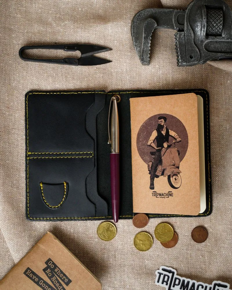La cartera de Trip Machine Explorer está hecha para aquellos que no pueden quedarse quietos. La cartera exploradora es un elemento esencial cotidiano que también es un gran compañero de viaje en la carretera. Es una reminiscencia del arte olvidado para capturar recuerdos en el papel. Después de todo, las aventuras más memorables se capturan en la mente y no en cámara. Cada billetera viene con notas de campo de elección. Lo suficientemente grande como para caber en un pasaporte, lo suficientemente pequeño para caber en tu bolsillo. Especificaciones detalladas: 2 compartimentos principales para dinero y facturas, 2 ranuras para cartas para todas las tarjetas, bolsillo para recoger la púa de guitarra, ranura para fijar en una nota de campo o colocar su pasaporte. Hecho de cuero de la más alta calidad que está construido para durar toda la vida y mejora con cada aventura.