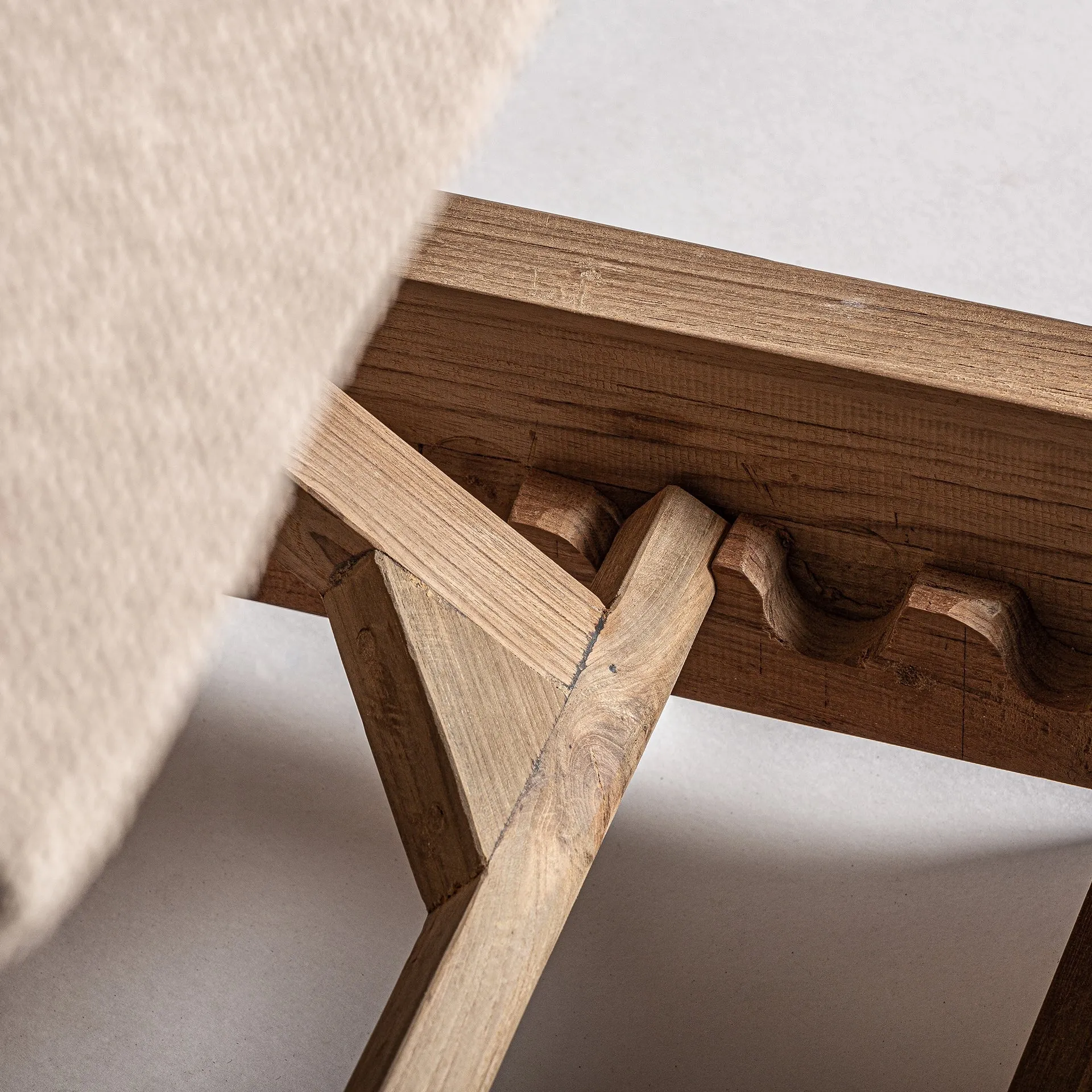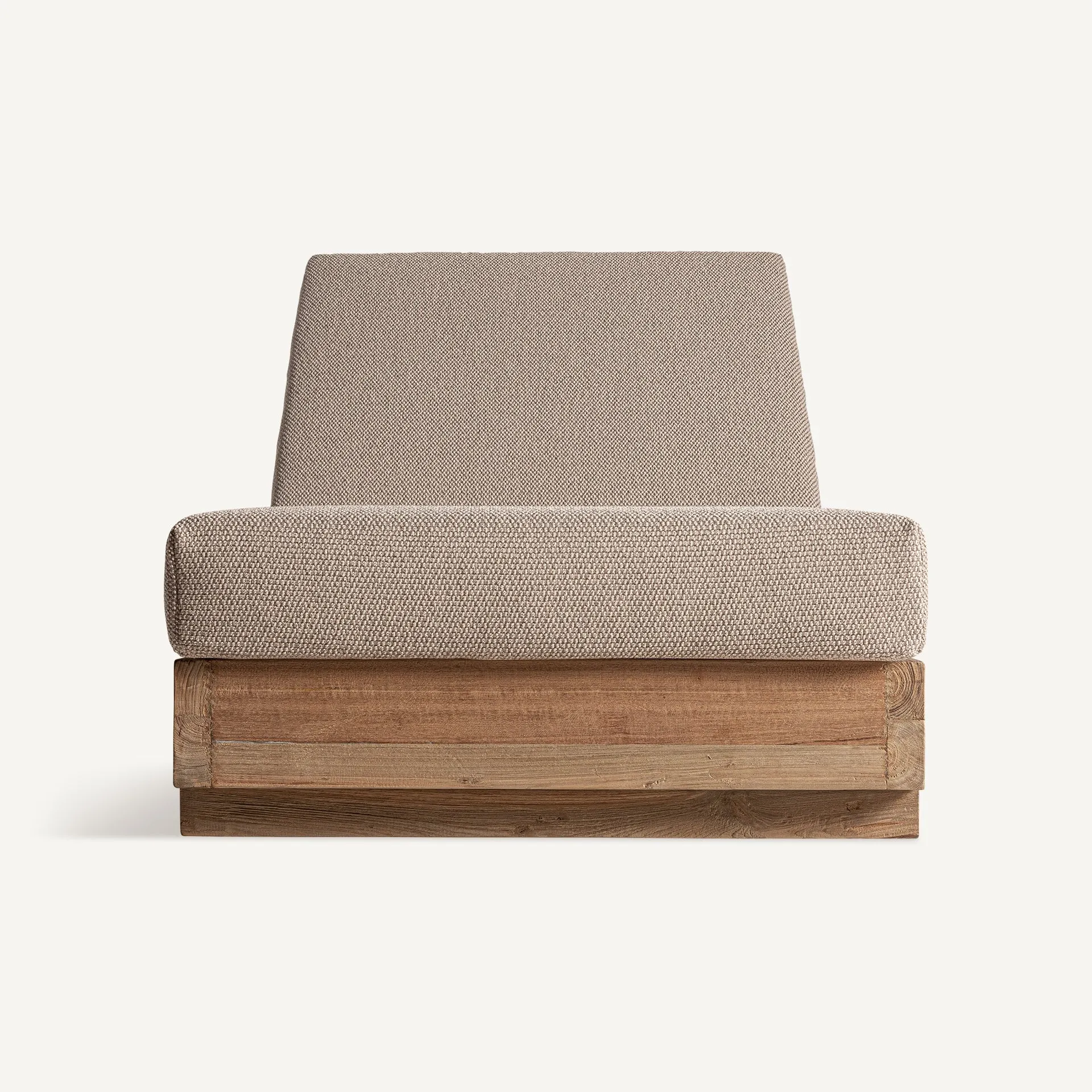Tumbona individual y doble para exterior, de estilo colonial, en color marrón/beige natural, en madera de teka reciclada, combinado con polipropileno reciclado y espuma. Tapicería hidrófuga.