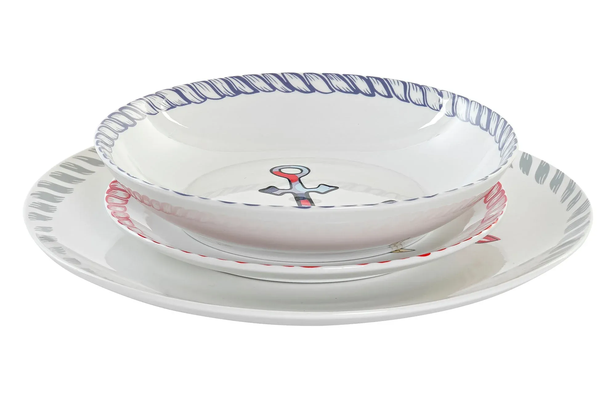 Preciosa vajilla fabricada en porcelana con motivos náuticos.