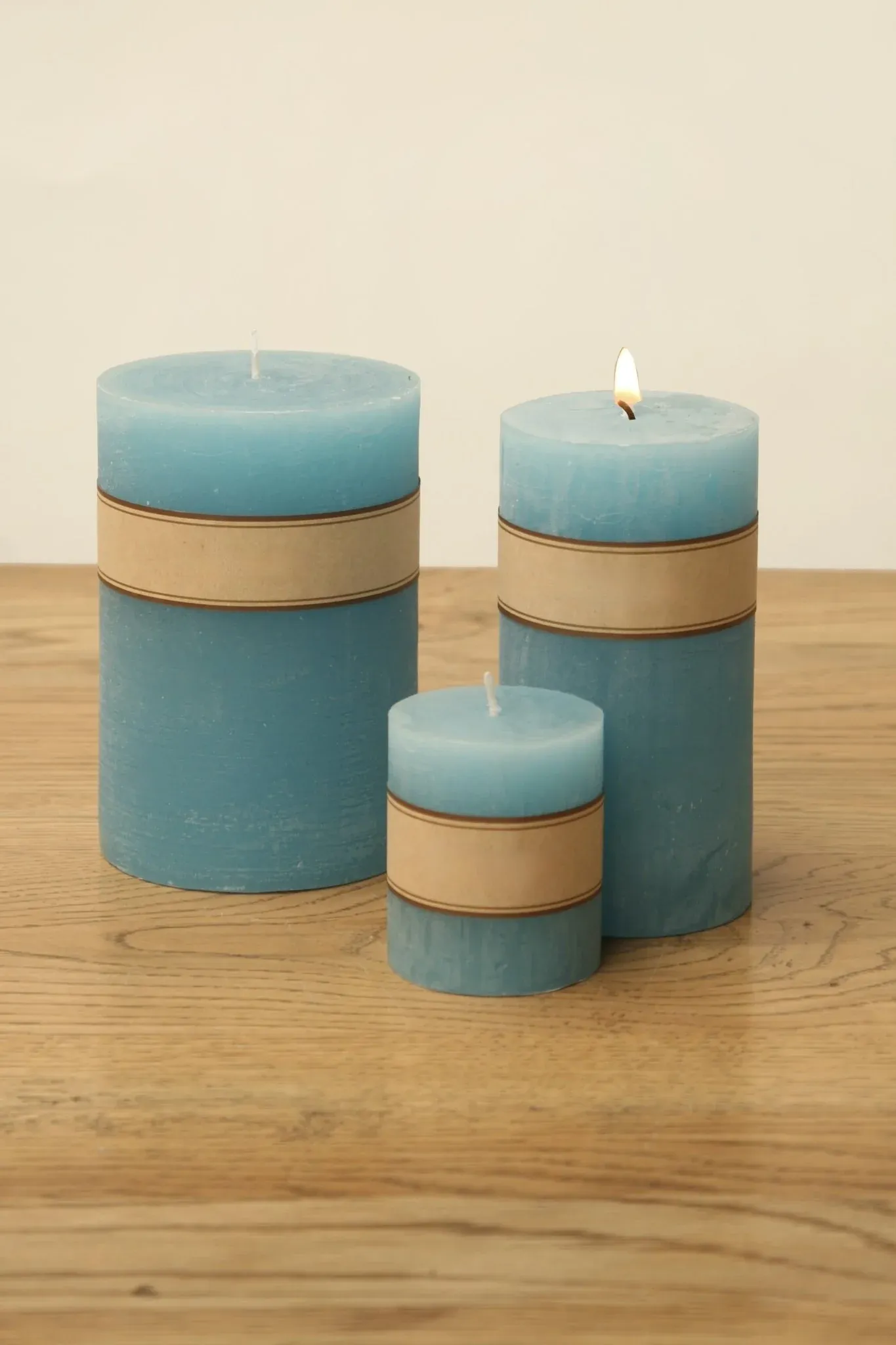 Vela rústica fabricada en parafina 100% con mecha de algodón 100% en color turquesa.