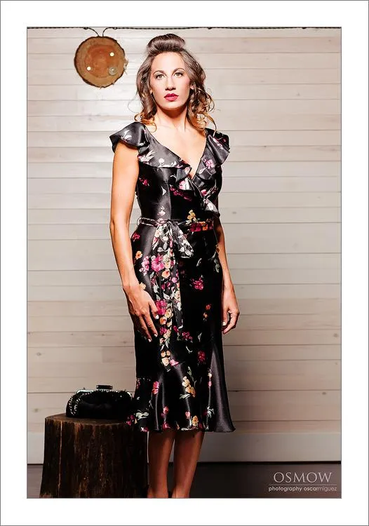 Vestido de satin con estampado floral de Stop Staring, fabricado y diseñado en USA. Ideal para cualquier evento.