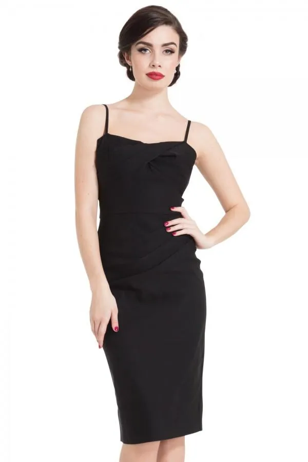 Vestido negro de tubo elastico con escote fruncido y tirantes regulables. Ideal para cualquier evento.