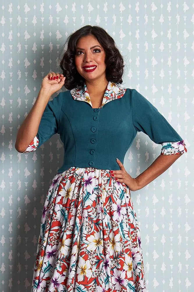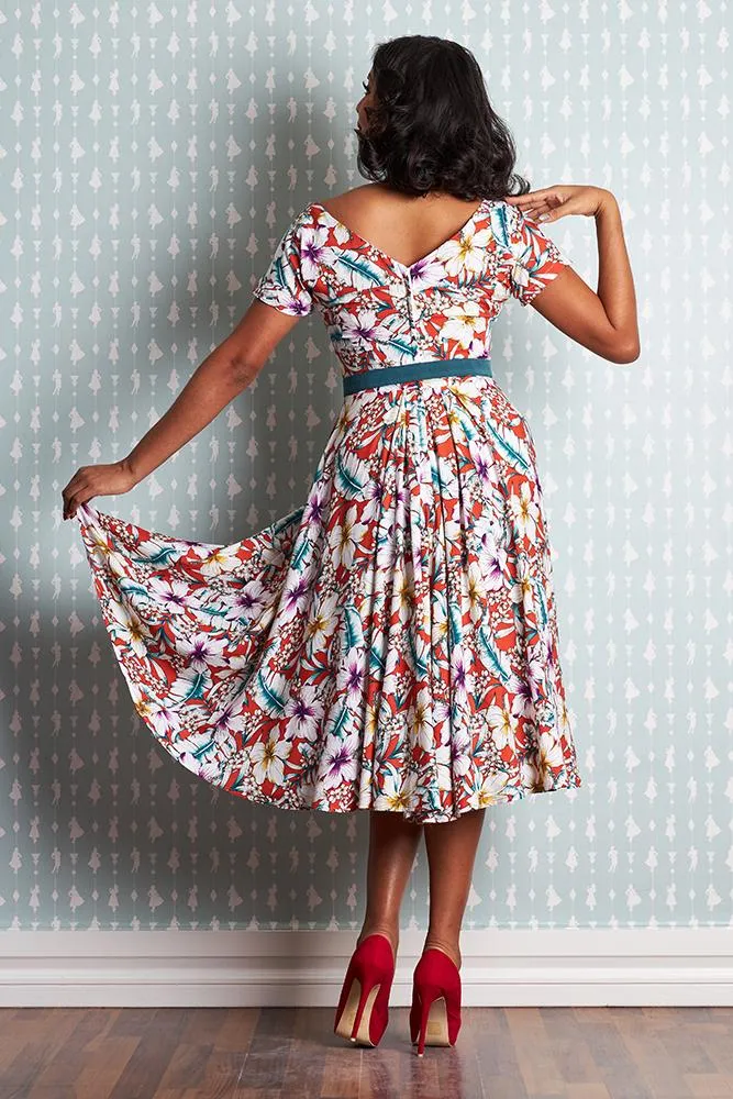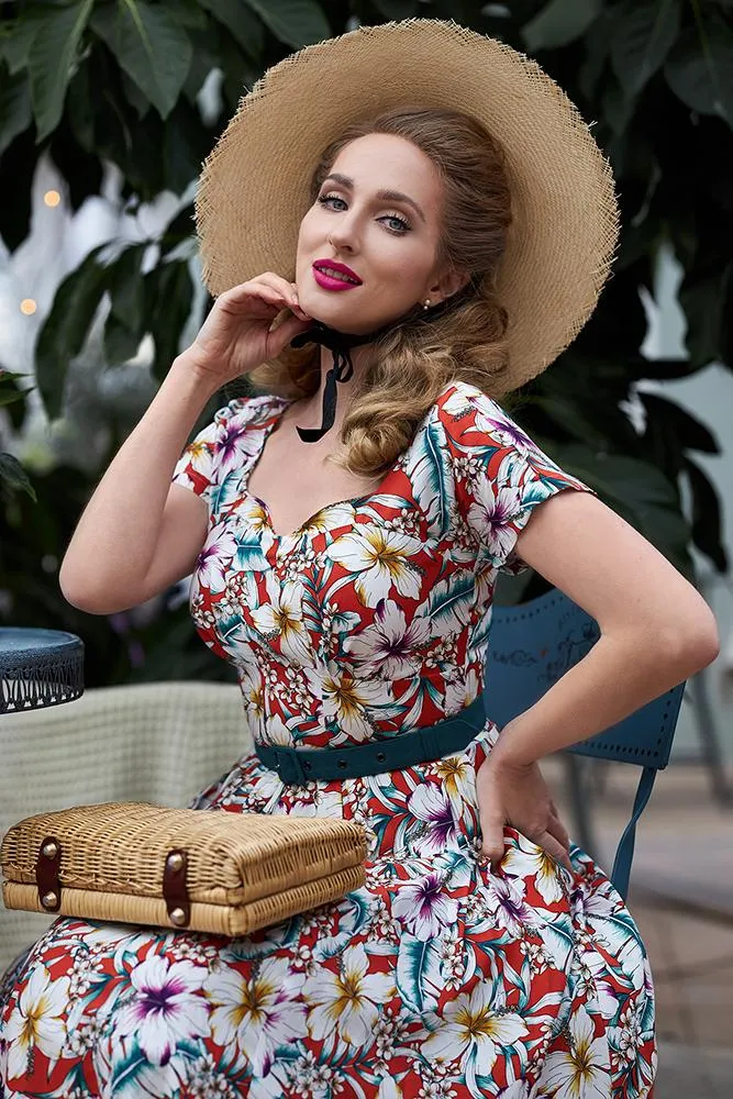 Vestido floral Patty-Amber, ¡Elegancia instantánea! Nuestro vestido Patty es un vestido totalmente femenino con pliegues debajo del busto y falda acampanada. En la espalda, el escote se sumerge en una V poco profunda.