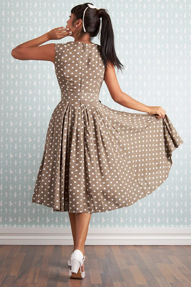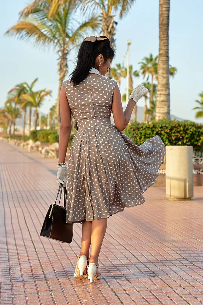 Luce la elegancia con el Edrah-Sadie, un encantador vestido de verano sin mangas confeccionado en viscosa ligera con lunares en tonos arena y blanco. Con un coqueto escote Reina Ana y un favorecedor corpiño ajustado, este vestido combina romanticismo y practicidad. La cremallera trasera y los bolsillos añaden detalles funcionales a su impresionante diseño. El corpiño forrado cubre y realza tu figura, irradia feminidad con cada uso. Ya sea para una ocasión especial o para una salida informal, este atemporal vestido de lunares combina a la perfección estilo y comodidad.
