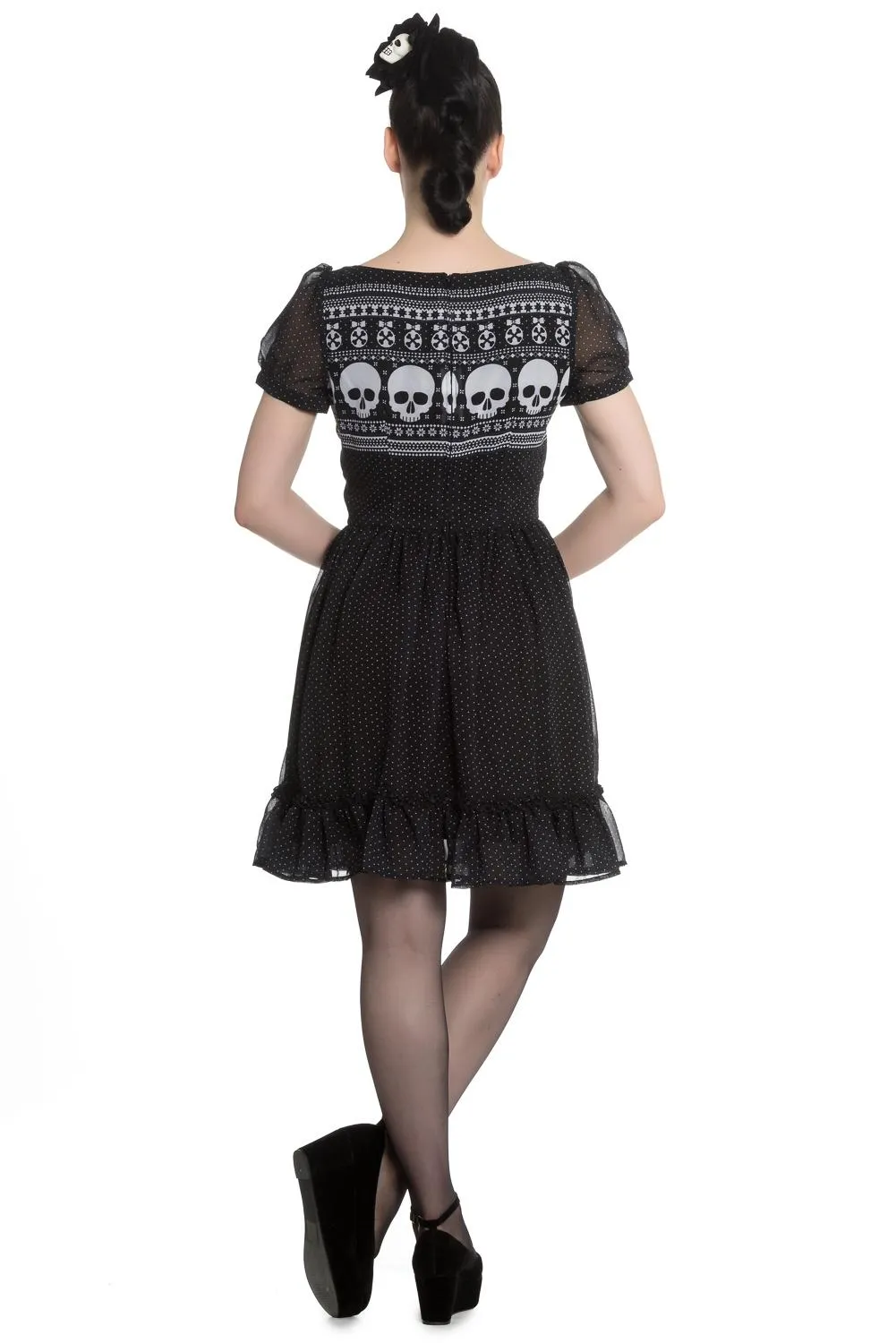 Vestido negro con calaveras Yule mini dress