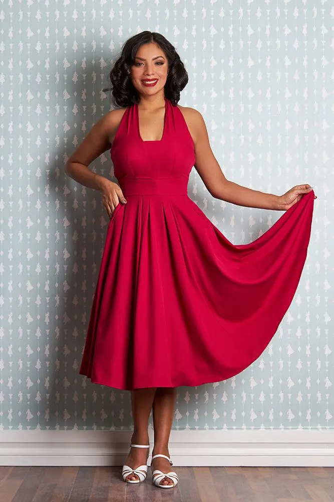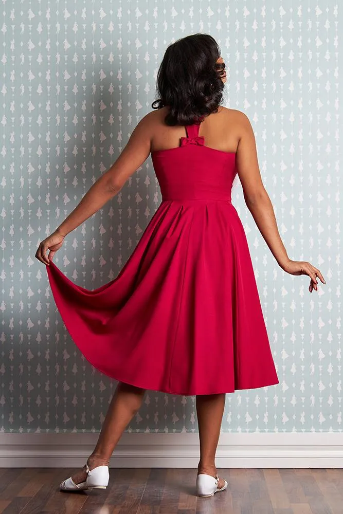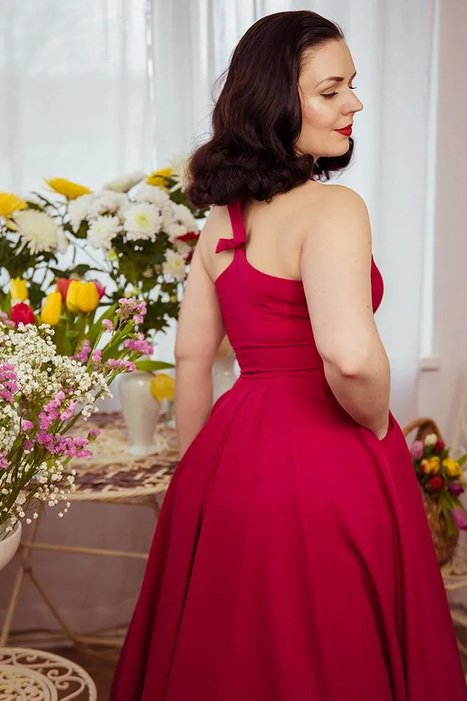 ¡Anímate a colorear con el vestido de una pieza Myra-Cerise, especialmente maravilloso en rojo brillante! Myra-Cerise está bellamente detallada con adornos de lazo decorativos en sus bolsillos funcionales. La ilusión de un profundo escote en V alarga la silueta. Y por supuesto, cabe destacar el encantador lacito, que decora la espalda y que no dejará indiferente a nadie!